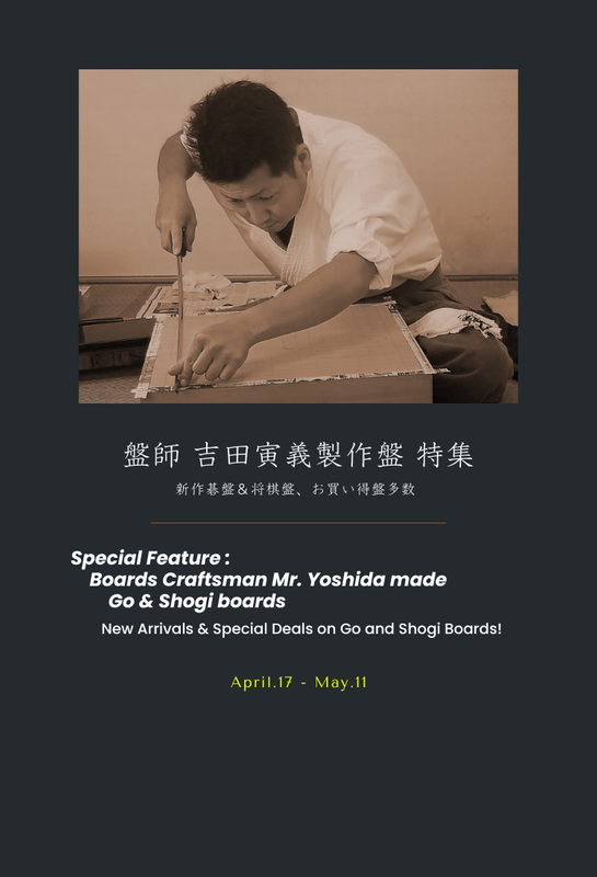 盤師 吉田寅義製作の新作碁盤と将棋盤の特集です。9路碁盤、11路碁盤、13路碁盤、15路碁盤、19路碁盤、卓上将棋盤、全て新作盤です。長年に渡る修練と日々の努力の積み重ねによって作られた、盤師 吉田寅義製作の盤を是非ご覧ください。お買い得価格での販売は、4月17日 - 5月11日まで>盤師 吉...