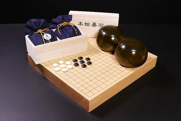 Clamshell Go stones craftsman Mr.Yoshifumi Shimozuru produced Go stones