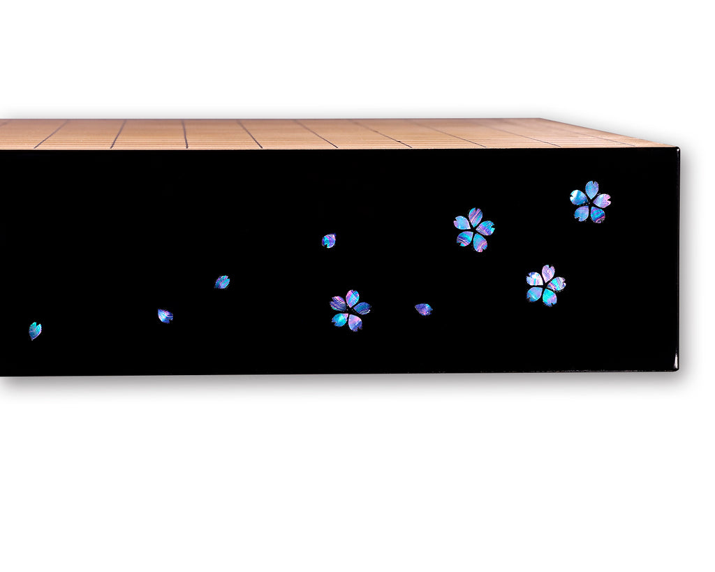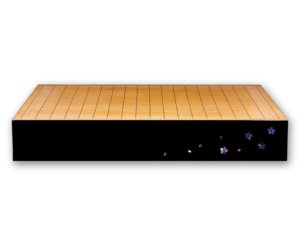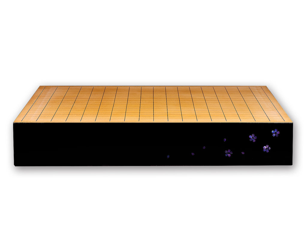 This table Go board is a one-of-a-kind piece specially commissioned and crafted by Kyoto-based urushi (lacquer) artist Mutsumi Oitate, featuring a cherry blossom design with raden (mother-of-pearl) inlay.