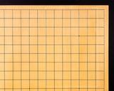 The base board is a tabletop Go board made from vertical-cut wood (tenchi-masa), meaning the straight grain runs continuously from the top to the bottom surface.