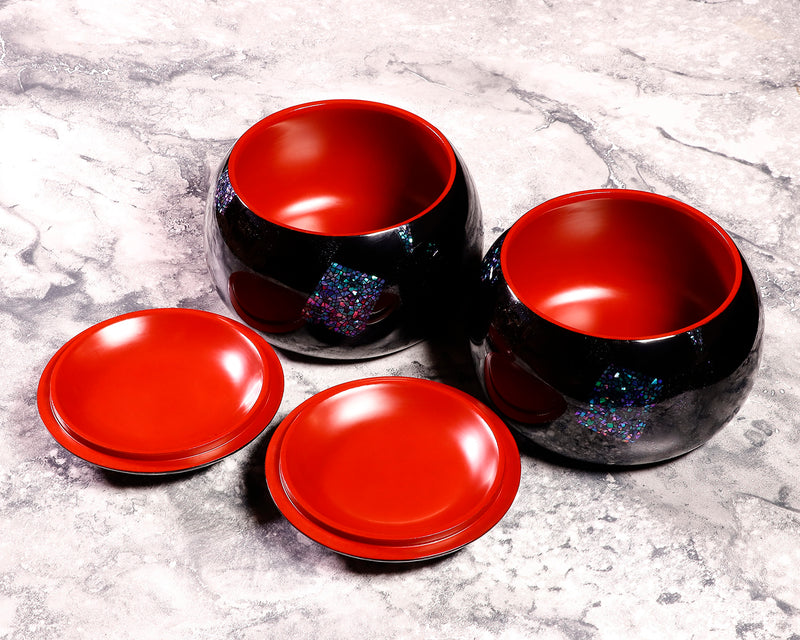 Extra-Large Go Bowls with Mosaic Raden Inlay by Urushi Artist Mutsumi Oitate