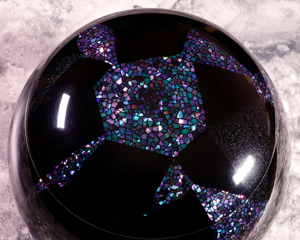 Because Go bowls have a curved surface, large pieces of raden inlay can sometimes lift or detach. To prevent this, each shell was carefully cut into smaller pieces and applied one by one, like a puzzle.