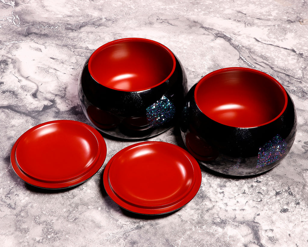 Super Extra-Large Go Bowls with Mosaic Raden Inlay by Urushi Artist Mutsumi Oitate