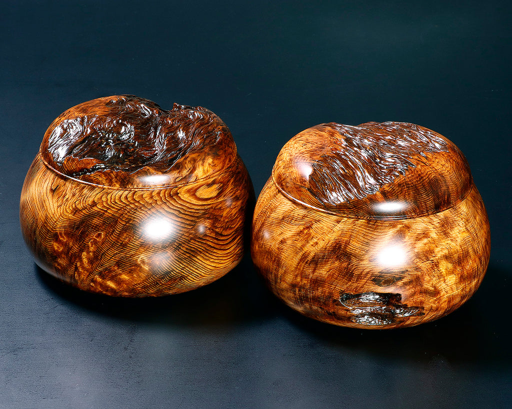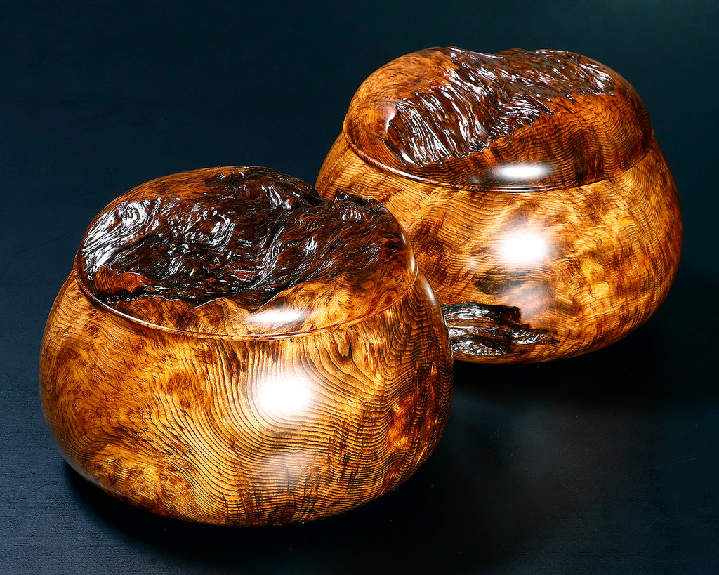 These Go bowls are "Yakusugi Go Bowls – Premium Burl Grain", created by wood craftsman Mr. Yukinori Kawashita.