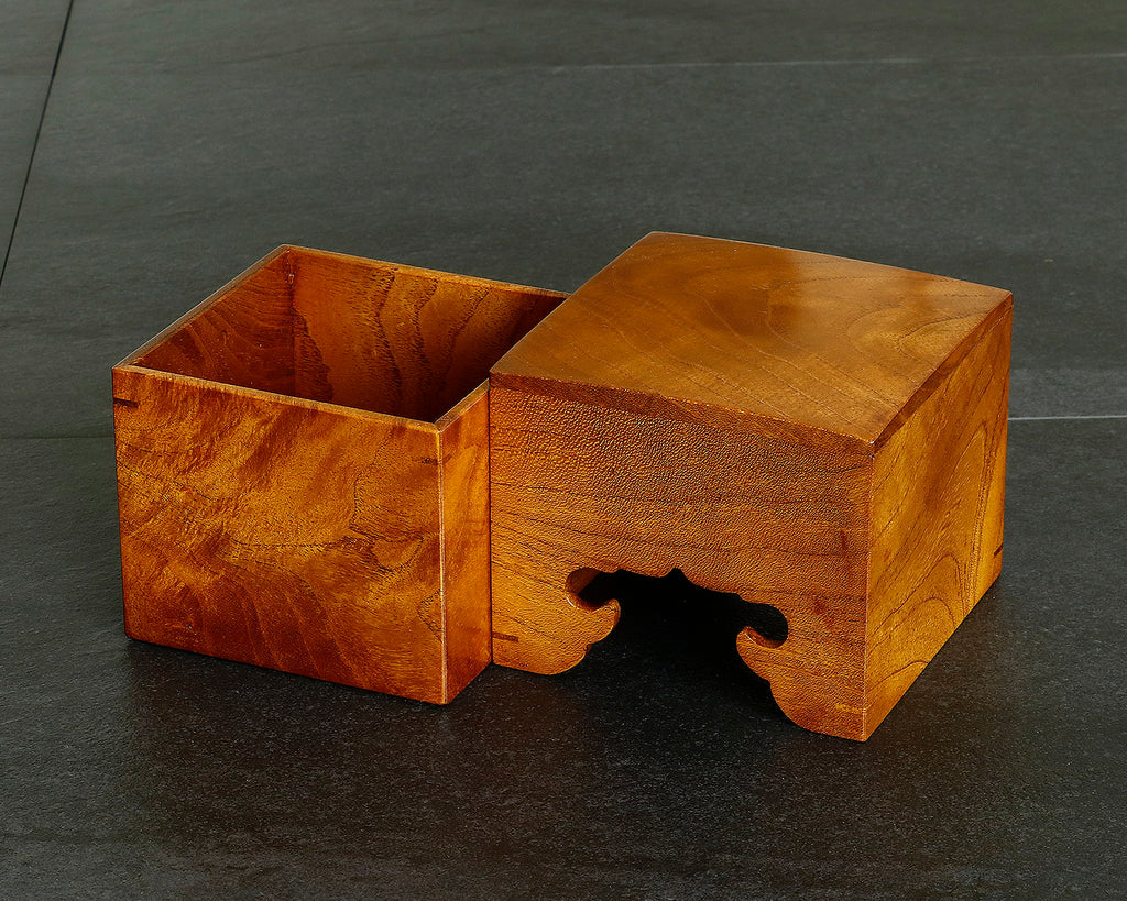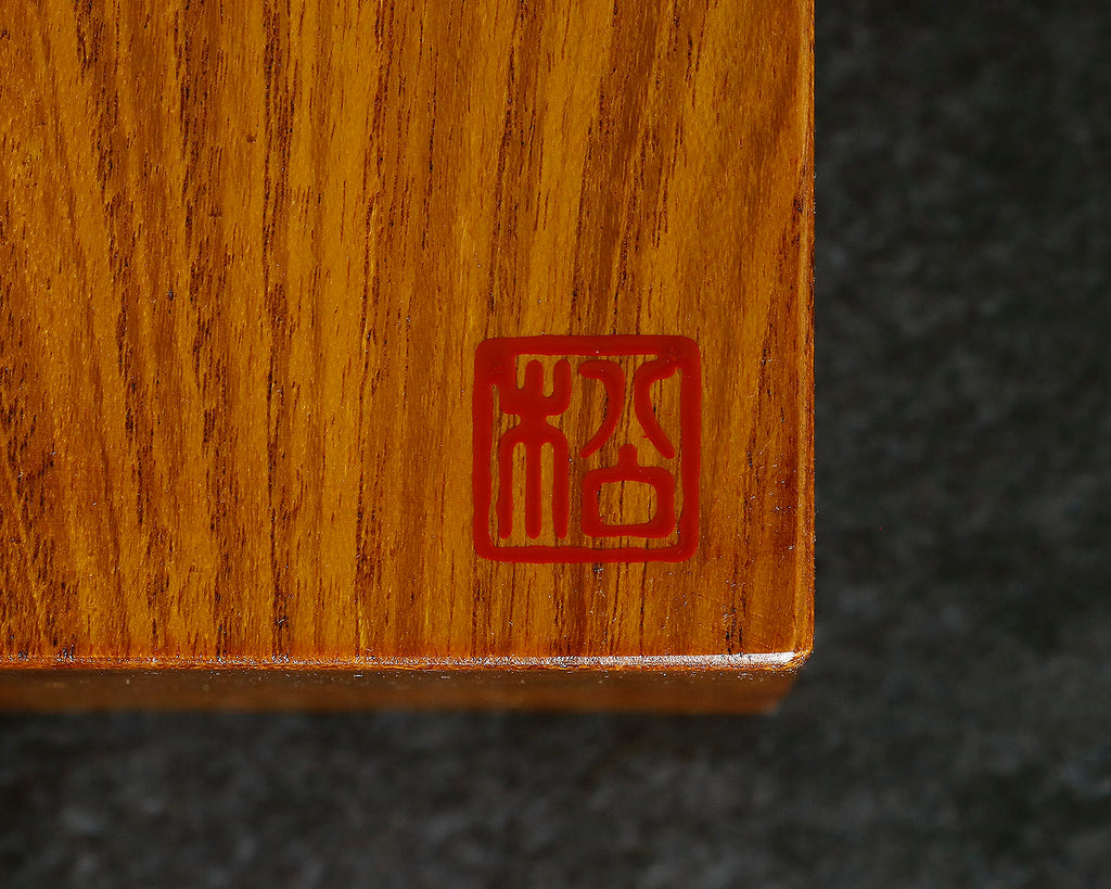 This shogi pieces box is made from shitan (rosewood), one of the "Three Great Exotic Hardwoods" (Sandai Karaki) traditionally prized in Japan for its beauty and high quality.