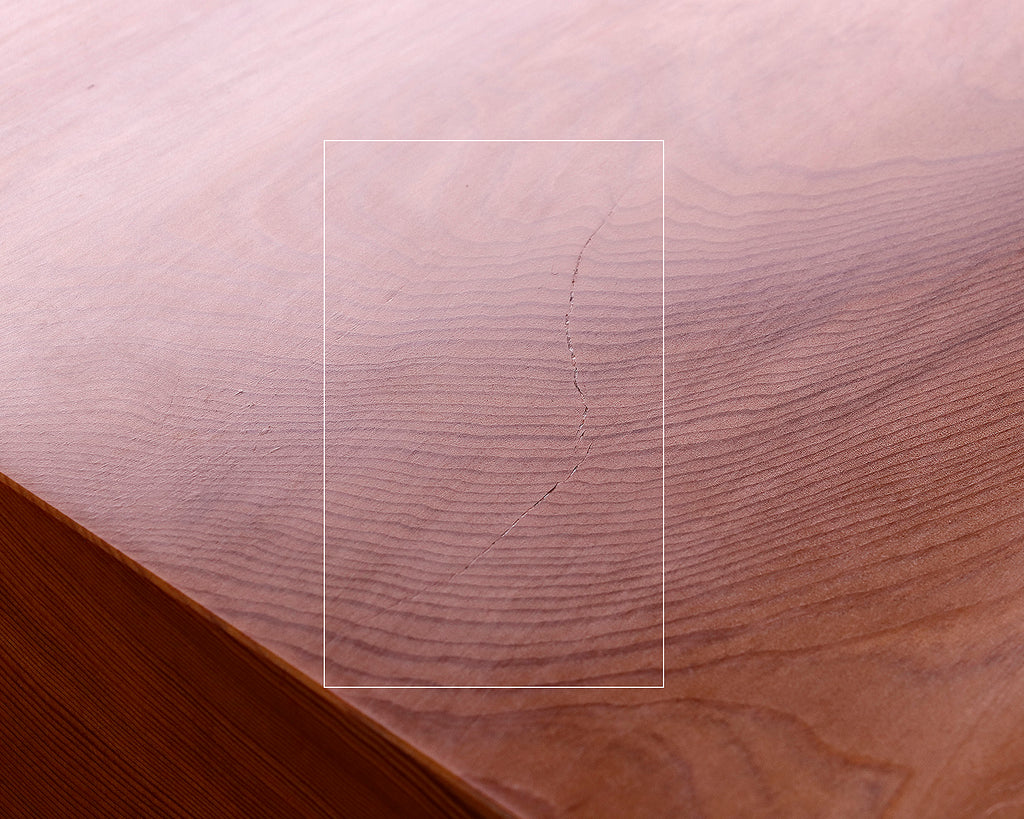 In addition, some repaired marks can be seen along the edges between the end grain and side surfaces.