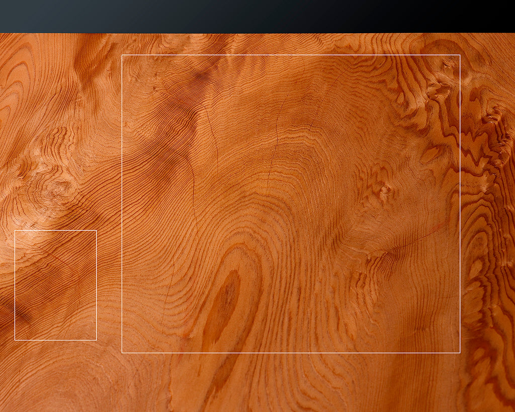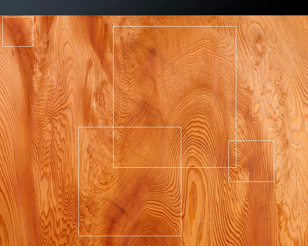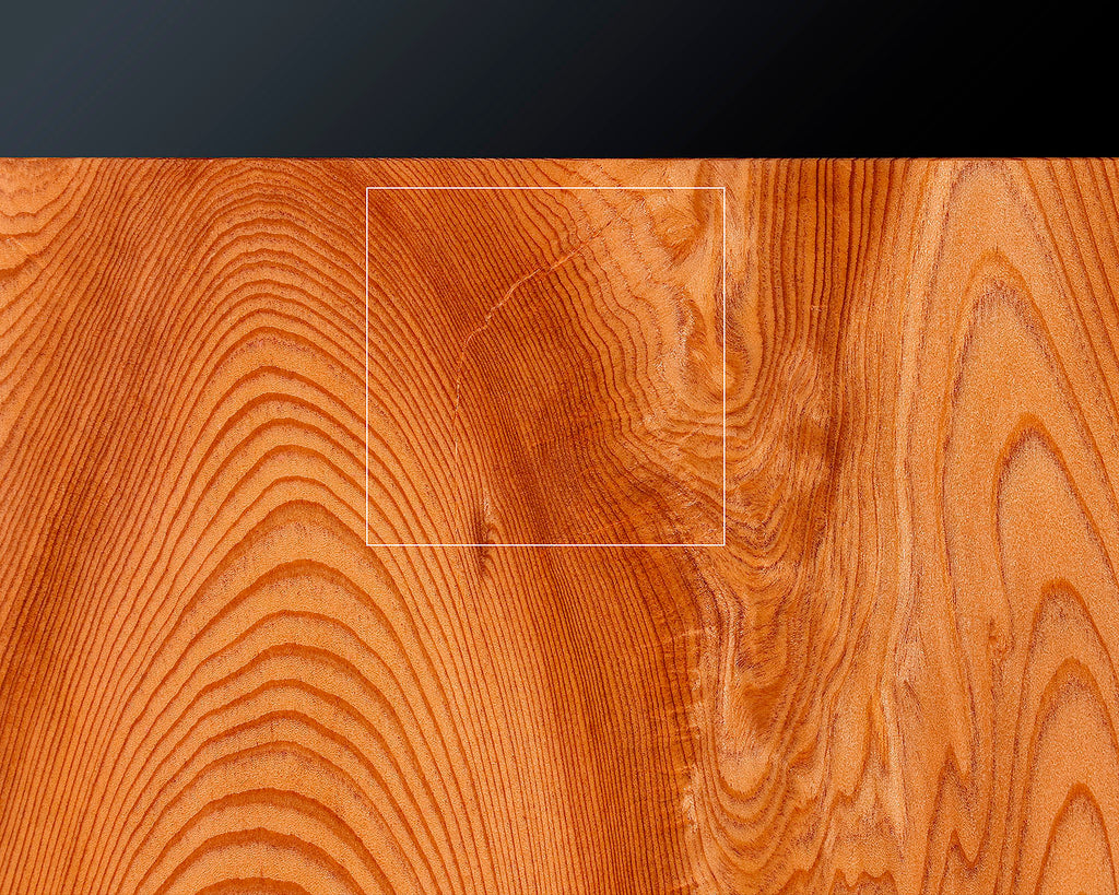 The moku patterns on the top surface, unique to Yakusugi cedar, are particularly beautiful.
