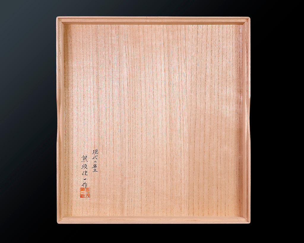 A paulownia wood presentation box is included, whose inner lid bears the handwritten inscription and seal of “Crafted by Contemporary Master Craftsman Kenichi Kumasu.”