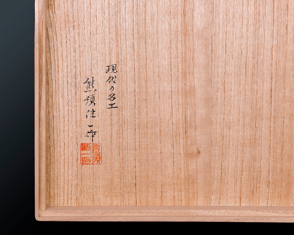 A paulownia wood presentation box is included, whose inner lid bears the handwritten inscription and seal of “Crafted by Contemporary Master Craftsman Kenichi Kumasu.”