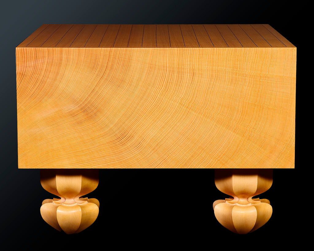 Each of the four legs of this Go board was meticulously hand-carved by the artisan, Mr. Kumasu.
