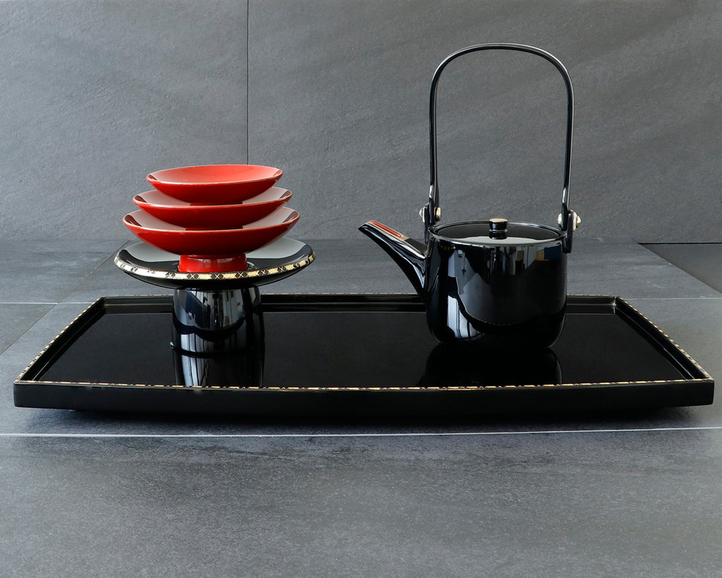 Cherished as a symbol of good fortune and longevity, it features a beautiful harmony of glossy black and vermilion lacquer accented with elegant gold details.
