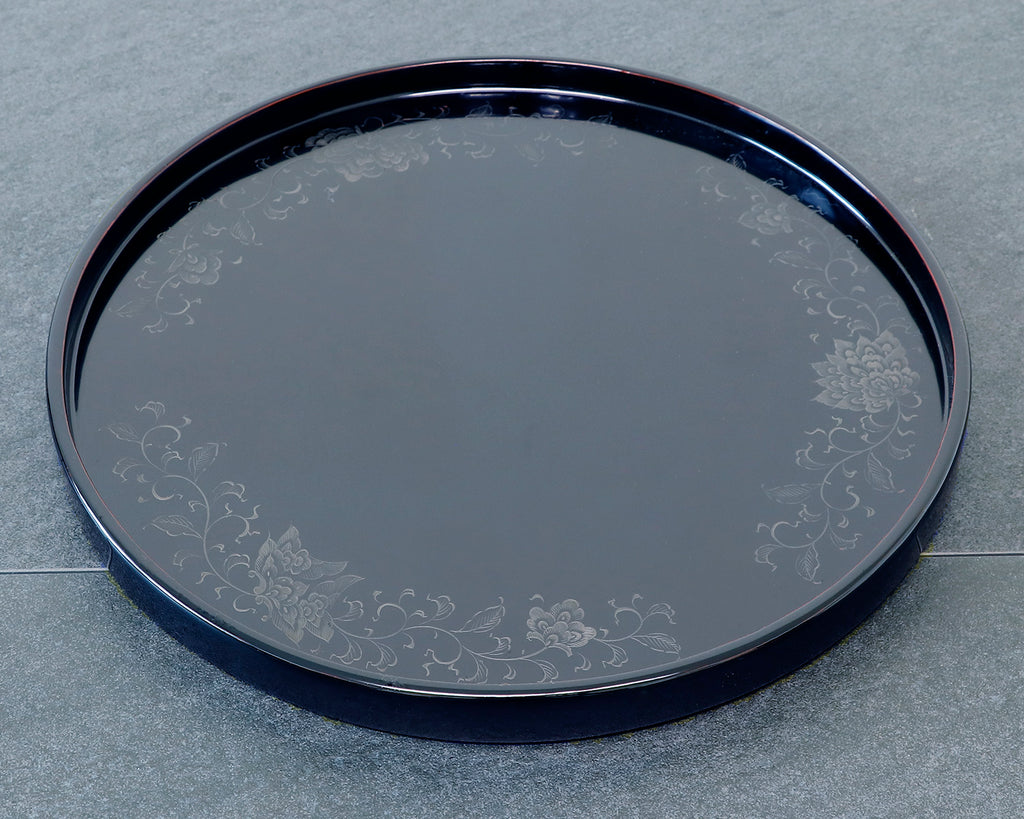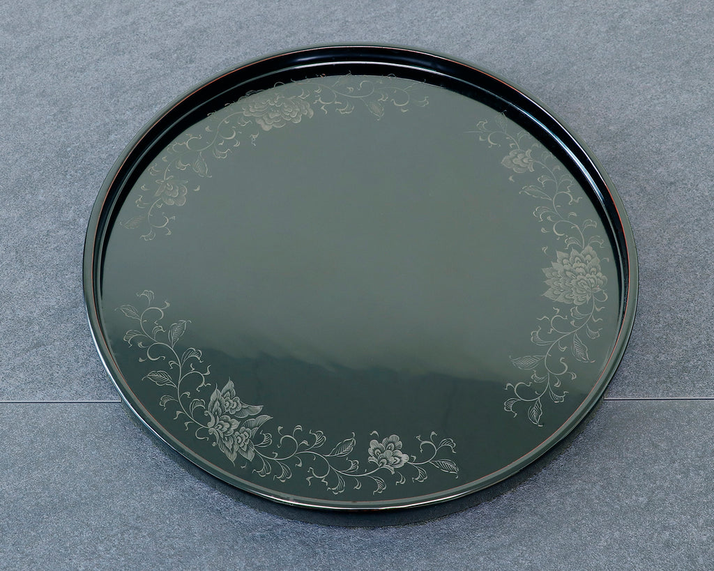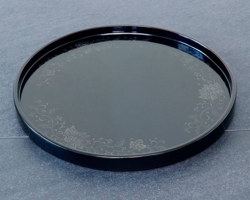 Wajima Lacquerware Round Tray “Housouge Black” (8-Sun) JAC-WOF-510-03