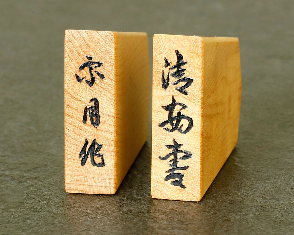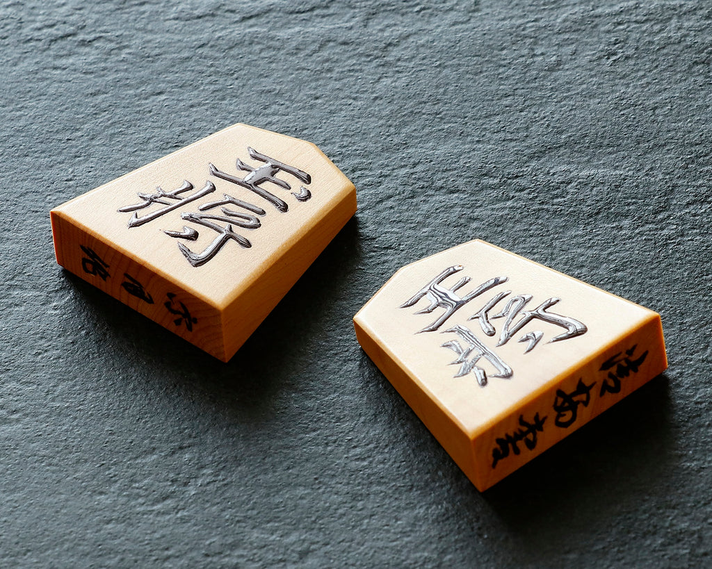 Designed to complement the shape of the shogi piece, this calligraphic style widens gracefully toward the base, creating a dignified yet refined appearance.