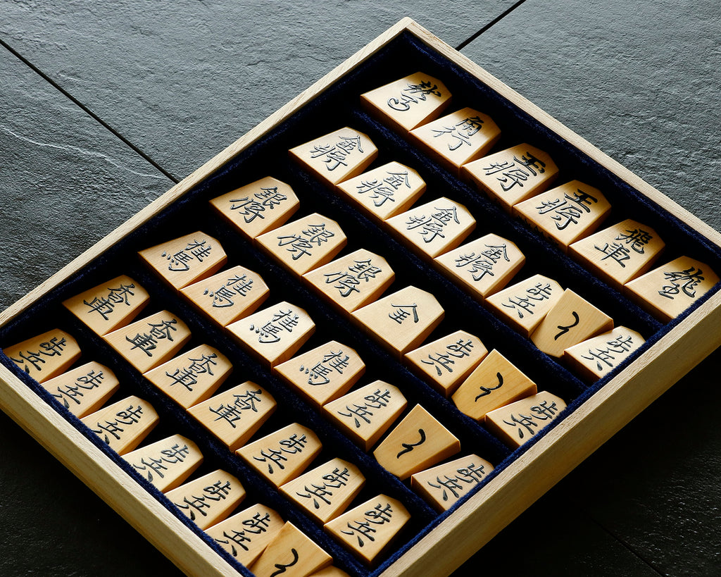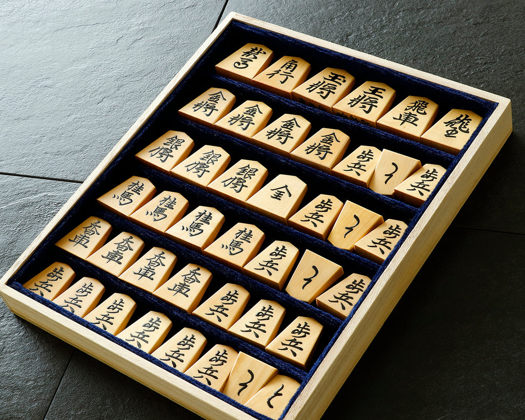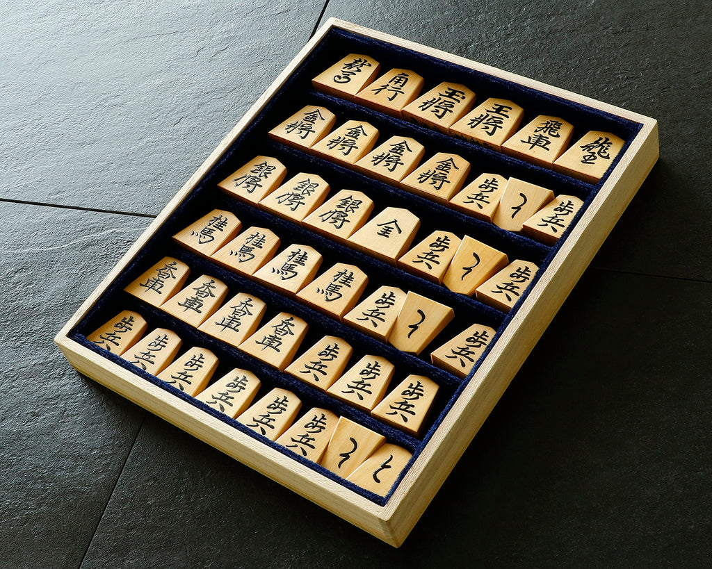 Shogi pieces in a paulownia flat box