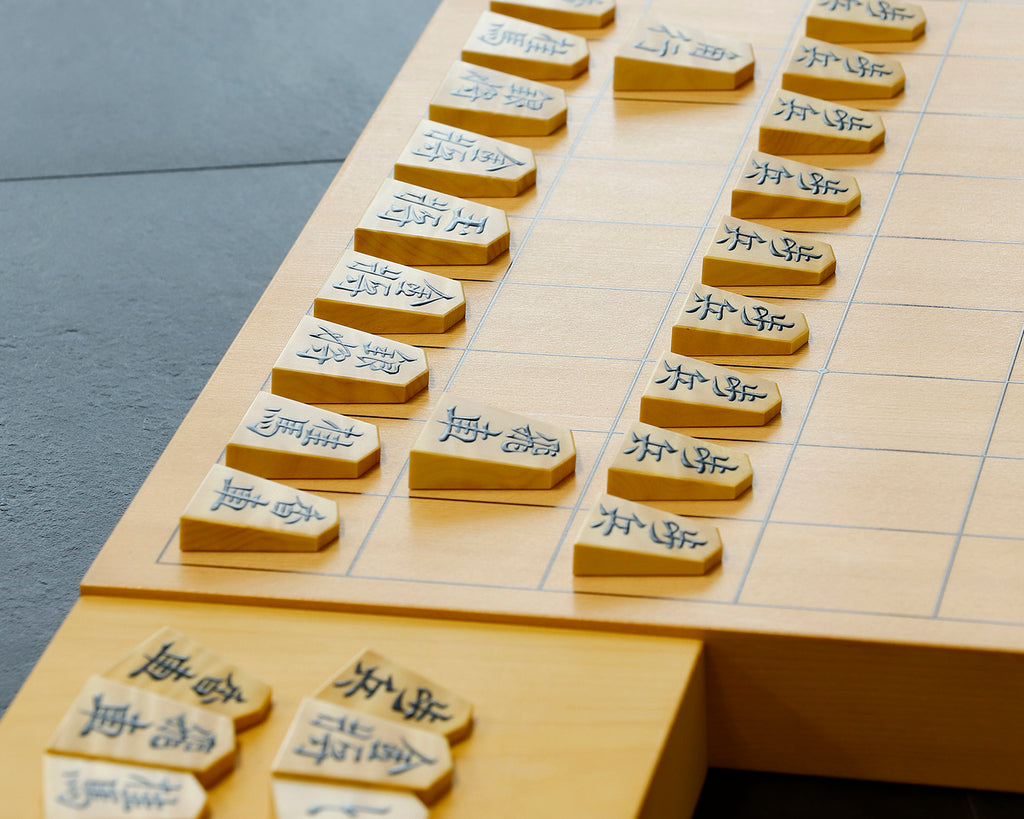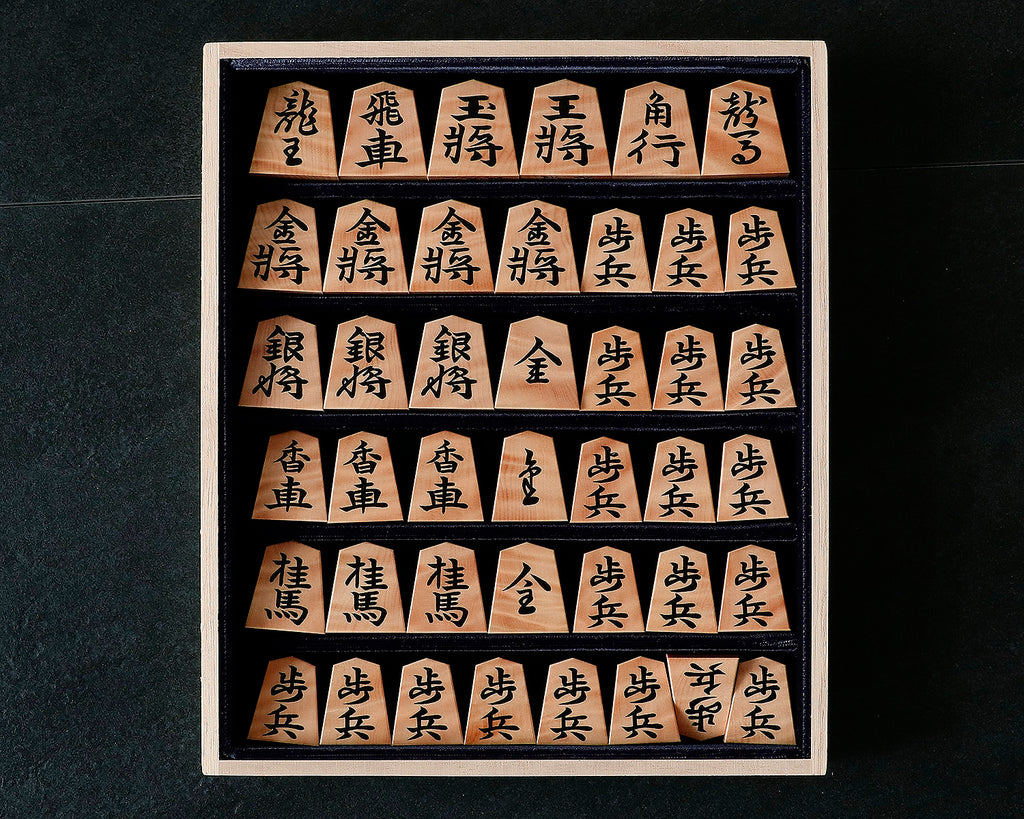 Shogi pieces in a paulownia flat box