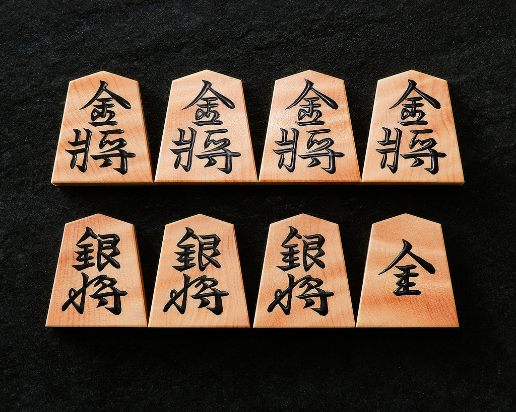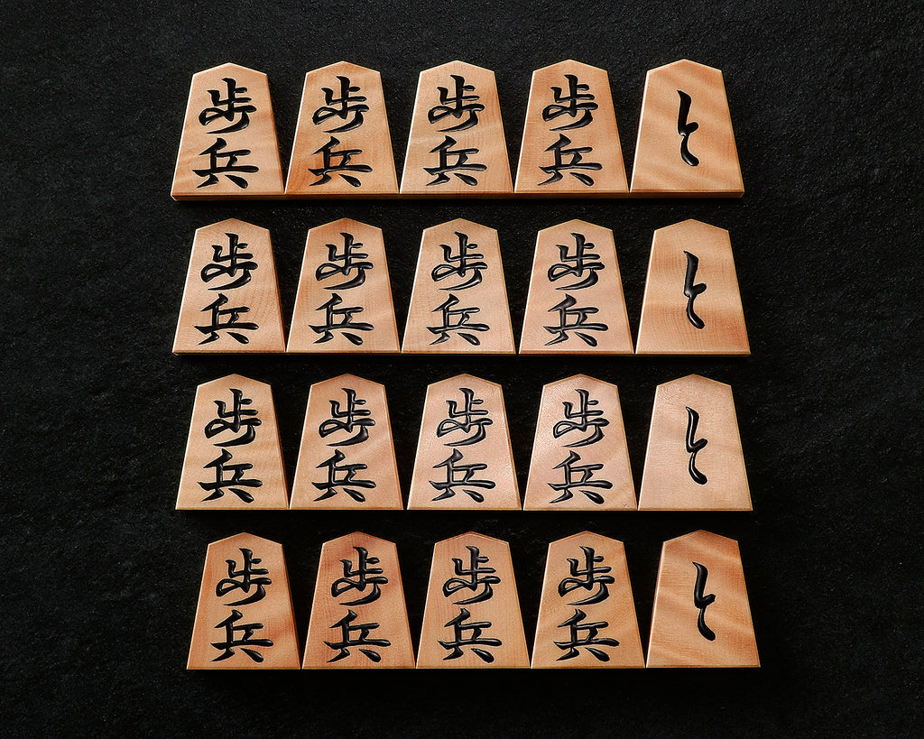 The surface of the Shogi pieces have faint stripe pattern.