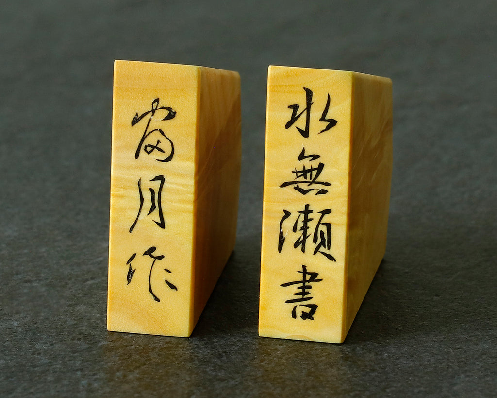 The combination of this natural beauty and the artisan’s mastery results in a truly exquisite set of Shogi pieces.