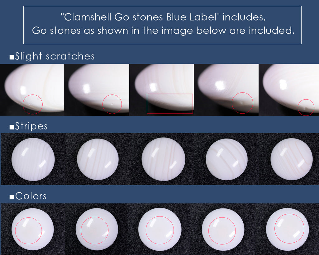 The "Clamshell Go stones Blue label" has some scratches, but it is a semi-qualified quality Go stones.