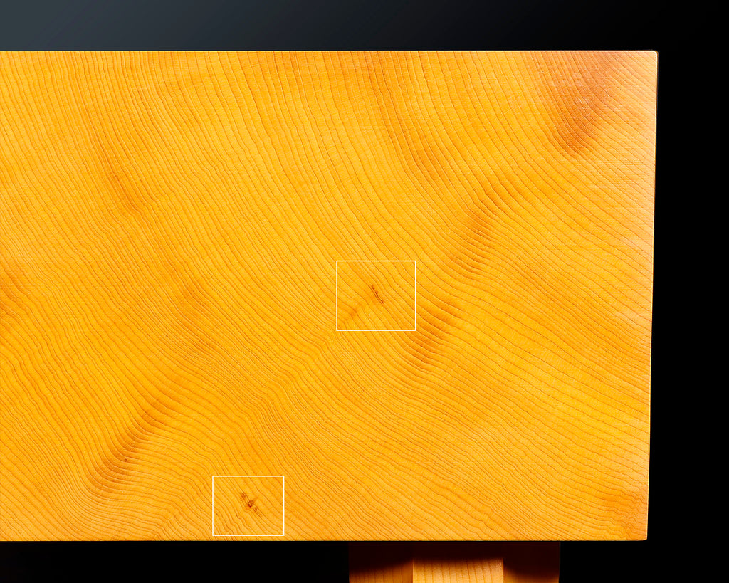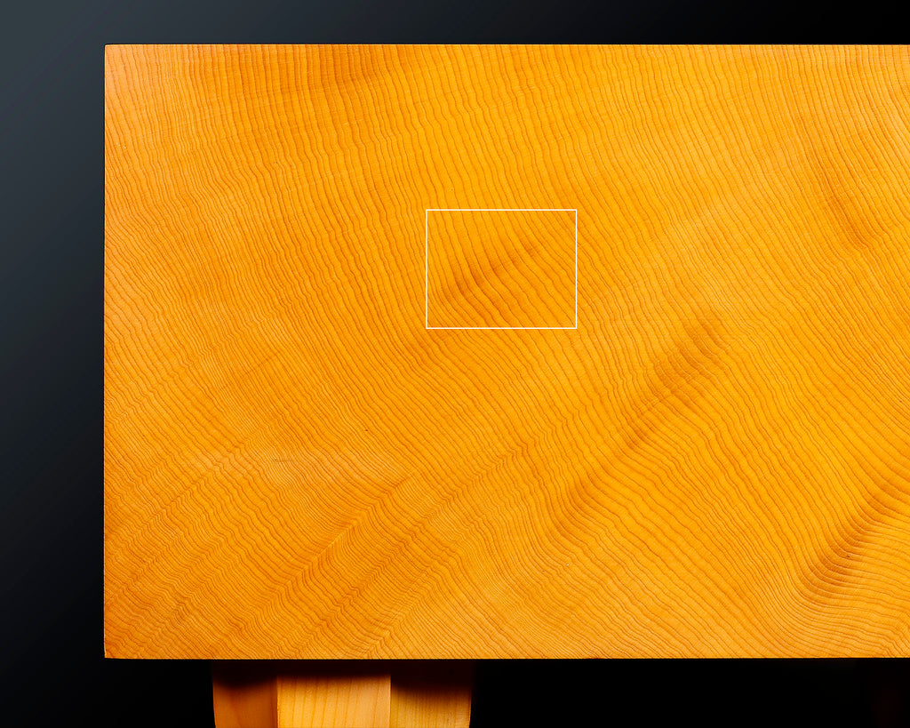 As a shihou-masa board, the top surface, bottom surface, and both side faces all display straight masame grain, making it an exceptionally beautiful and elegant board.