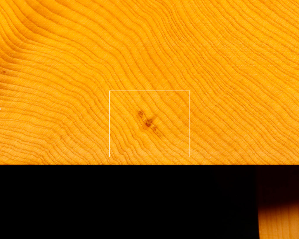 There is also a natural discoloration stain on one end grain, and a habushi mark on one of the side faces.