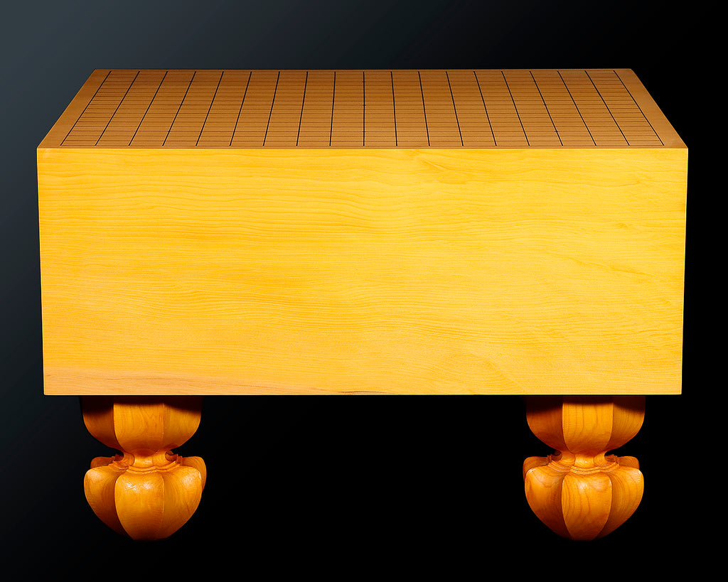 This Go board with legs, with a thickness of 6.0-Sun (approx. 180 mm) and a weight of about 19.6 kg, possesses an imposing thickness and a stately, commanding presence.