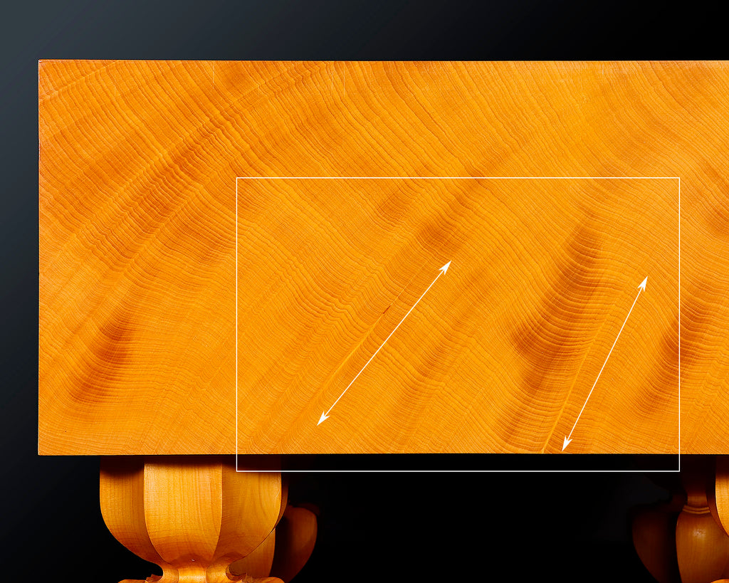 "Ten-masa" cutting style has masame (straight grain) only on the top surface of the board.