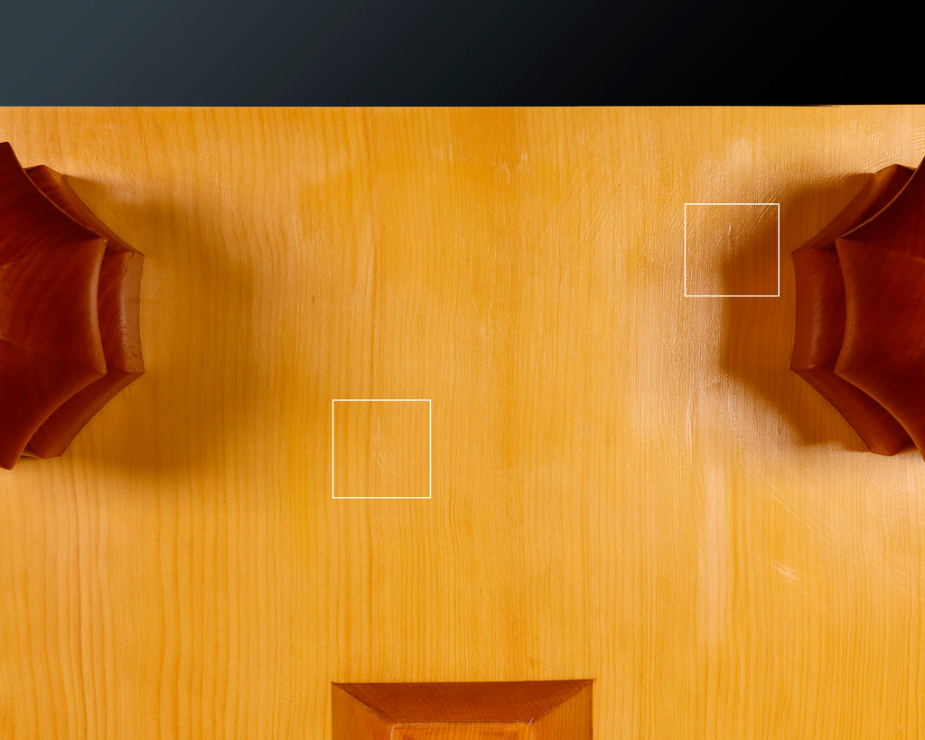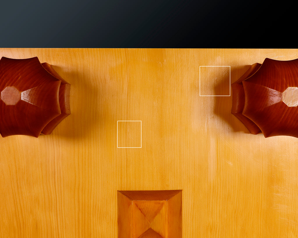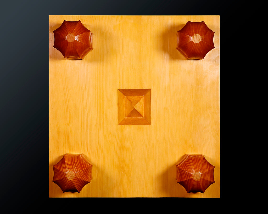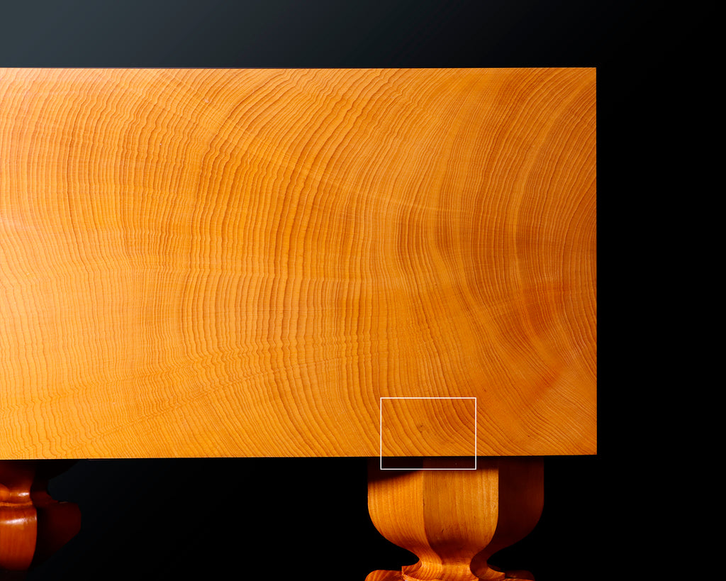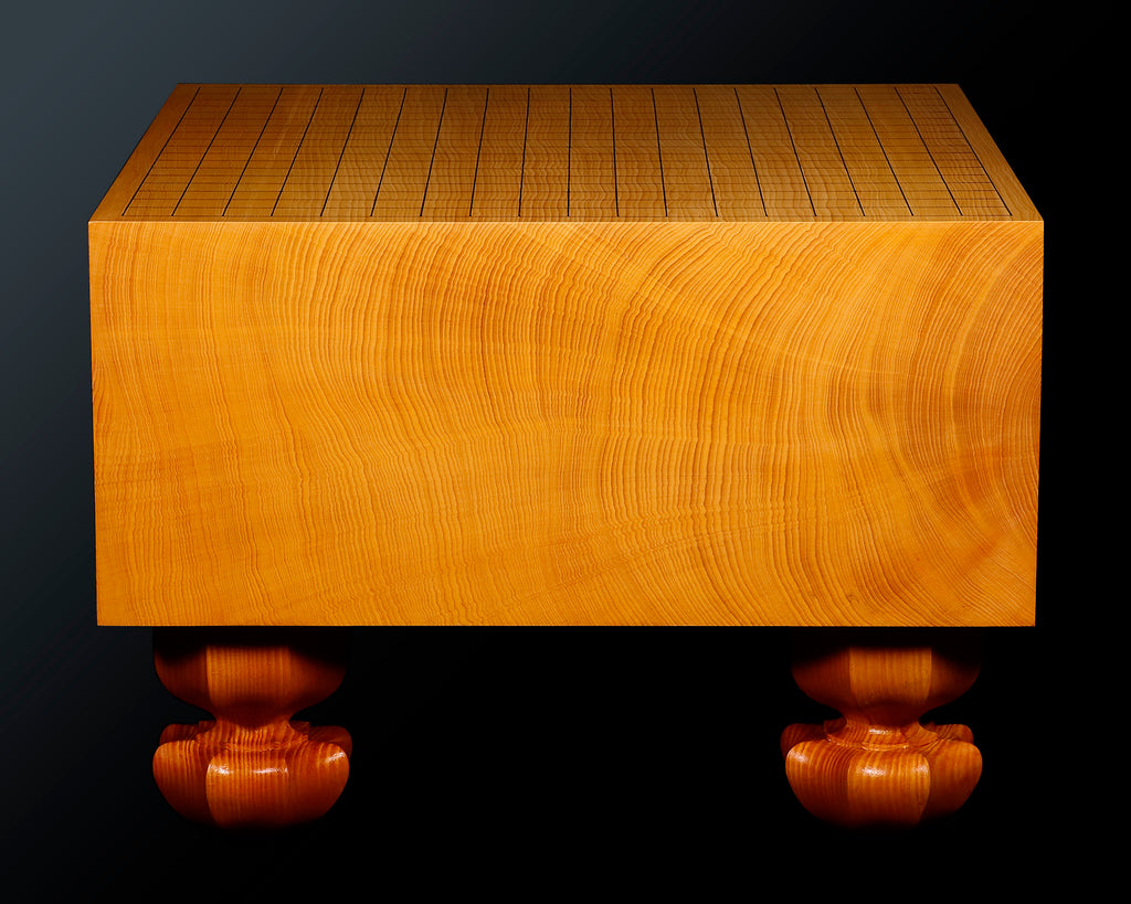 With a thickness of 6.2-Sun (approx. 188 mm) and a weight of about 22.6 kg, this floor-standing Go board features perfectly straight Ten-masa grain on the top surface, offering outstanding presence, weight, and luxury.