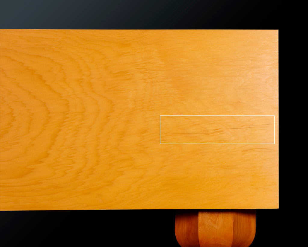 At the present, 6.2-Sun (approx. 188 mm) thick ten-masa board made from Japanese-grown kaya, a material that has become increasingly difficult to obtain, is exceptionally rare.