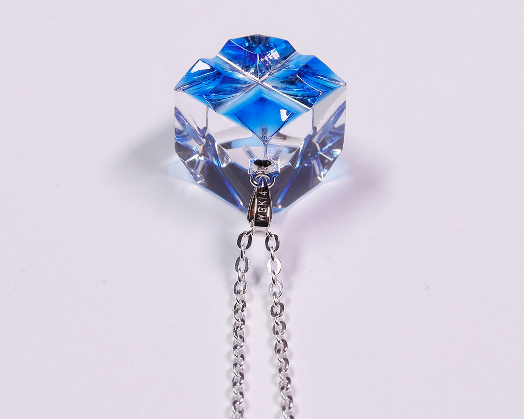 Shimadzu Satsuma Kiriko Cut Crystal Glass "Pendant – Cubic A, Cross / Blue"