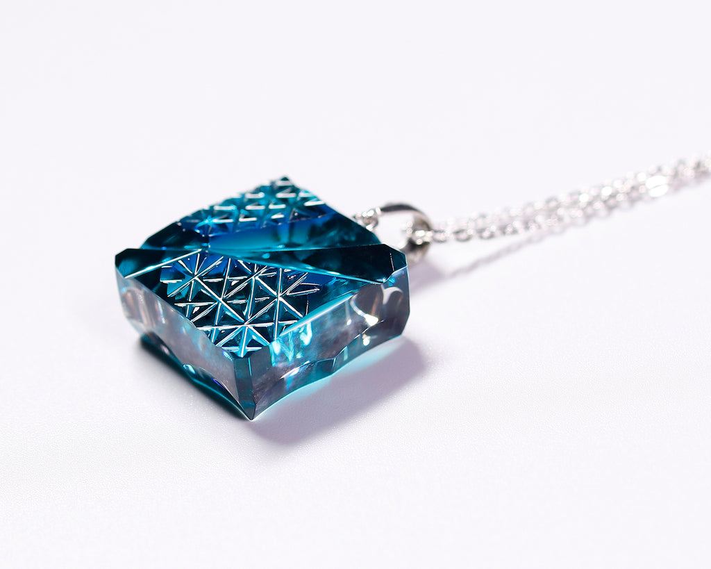 Shimadzu Satsuma Kiriko Cut Crystal Glass "Two-Tone Pendant “Hikari-e” (S) / Ruri–Green"