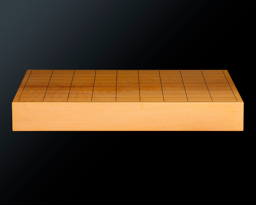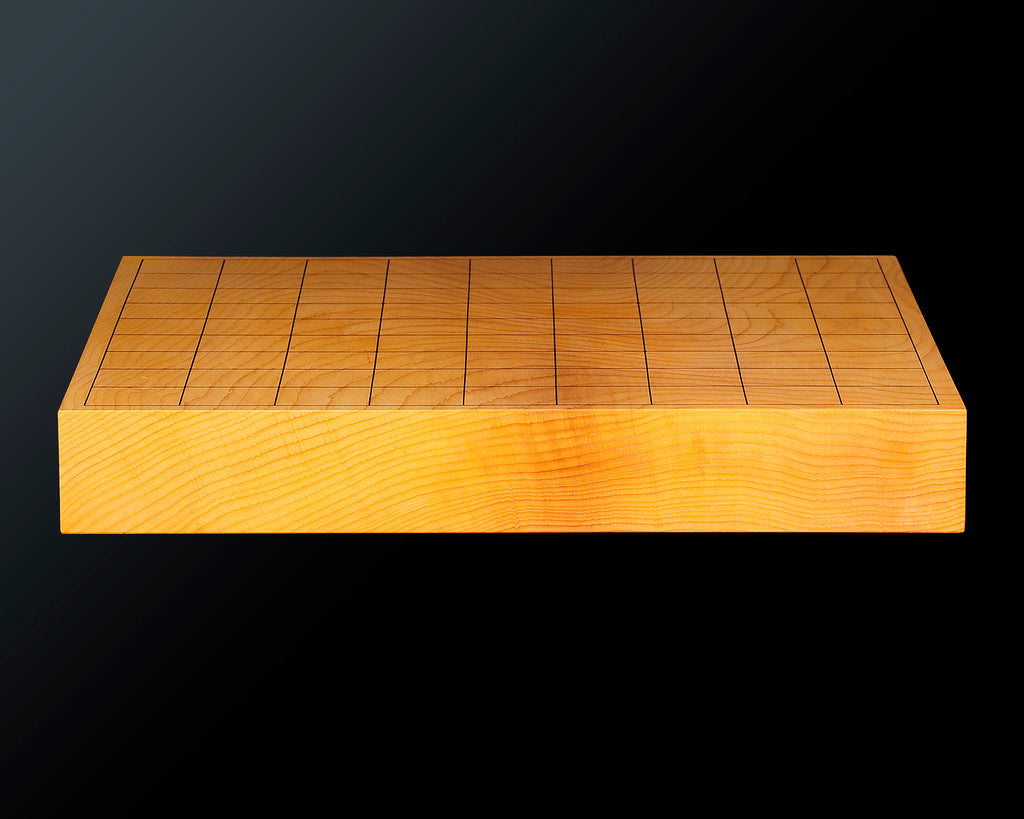This Itame 1.5-Sun (46 mm thick) 1-piece table Shogi board is made from Japan grown Hiba wood.