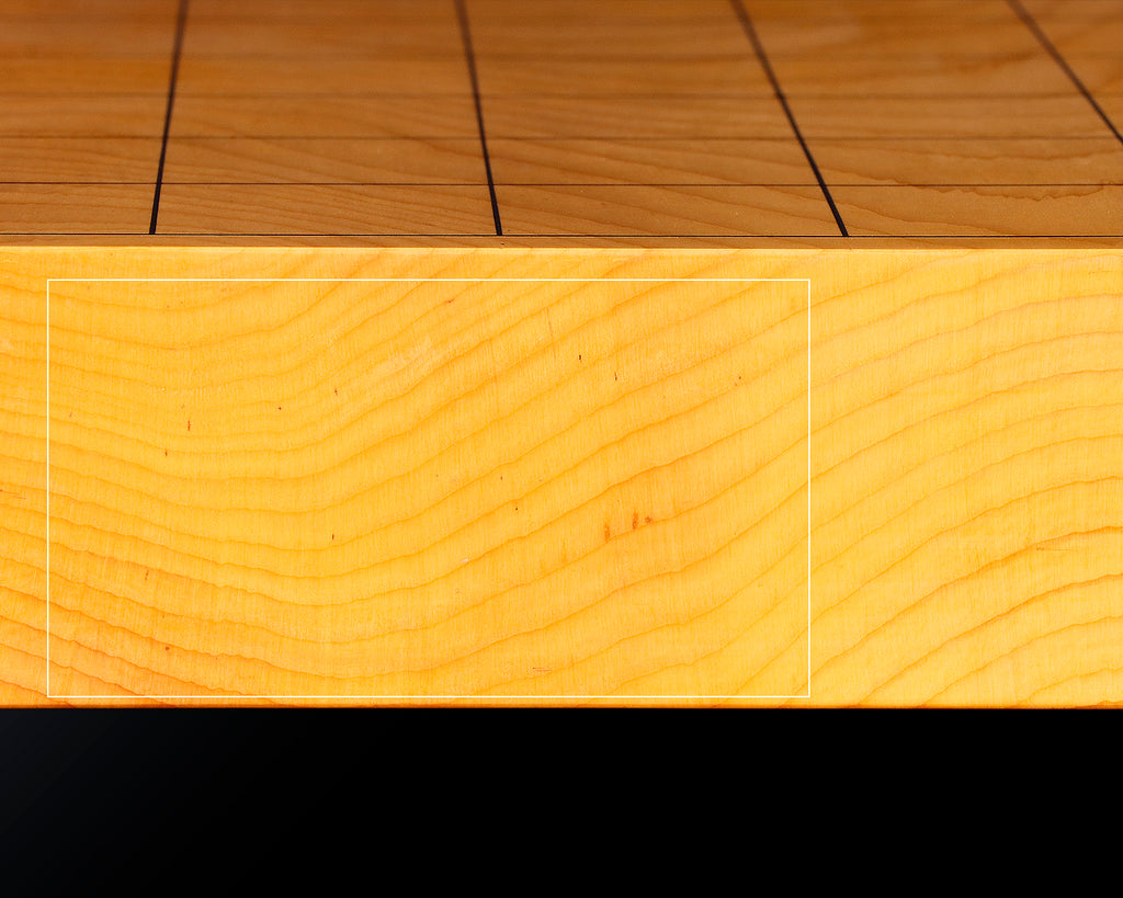 Hiba wood has a bright yellowish-white color and a fine grain, giving it a beautiful appearance. It has a distinctive aroma, and the wood is somewhat light and soft, making it resistant to water and moisture. Go boards made of hiba boast a good feeling when placing the Go stones, but the sound is subdued and discreet.