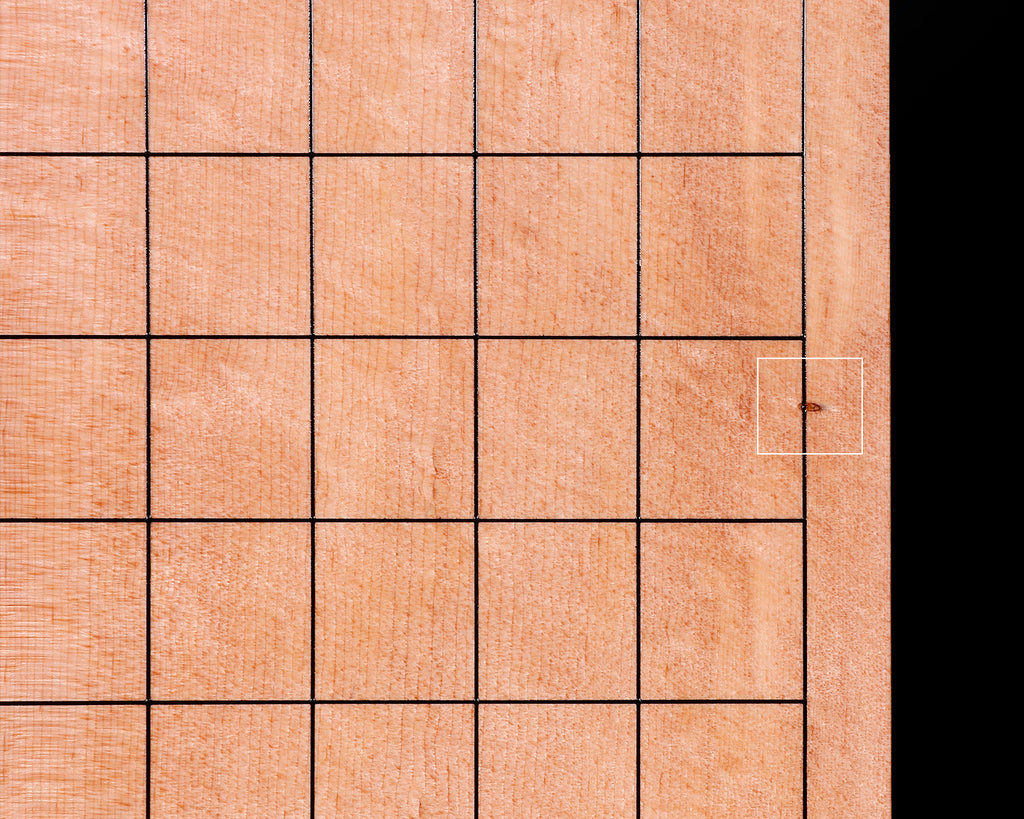"Shihou-masa" is an ideal cutting style with straight grain (masame)* on the top, bottom, and both sides (players' sides) of the board.