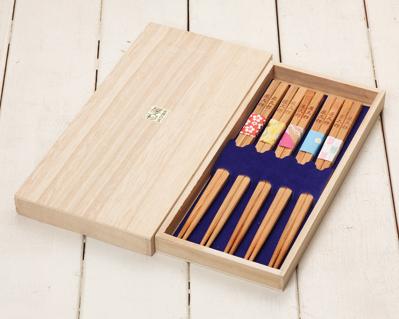 屋久杉専門店「美秋工芸(びしゅうこうげい)」の屋久杉 お箸セット(5膳)です。屋久杉の木目と木色が上品で美しいお箸です。*画像はサンプルです。同等品をお送りいたします。*木箱入りです。自分用としてはもちろんですが、大切な方への贈り物としてもおすすめです。