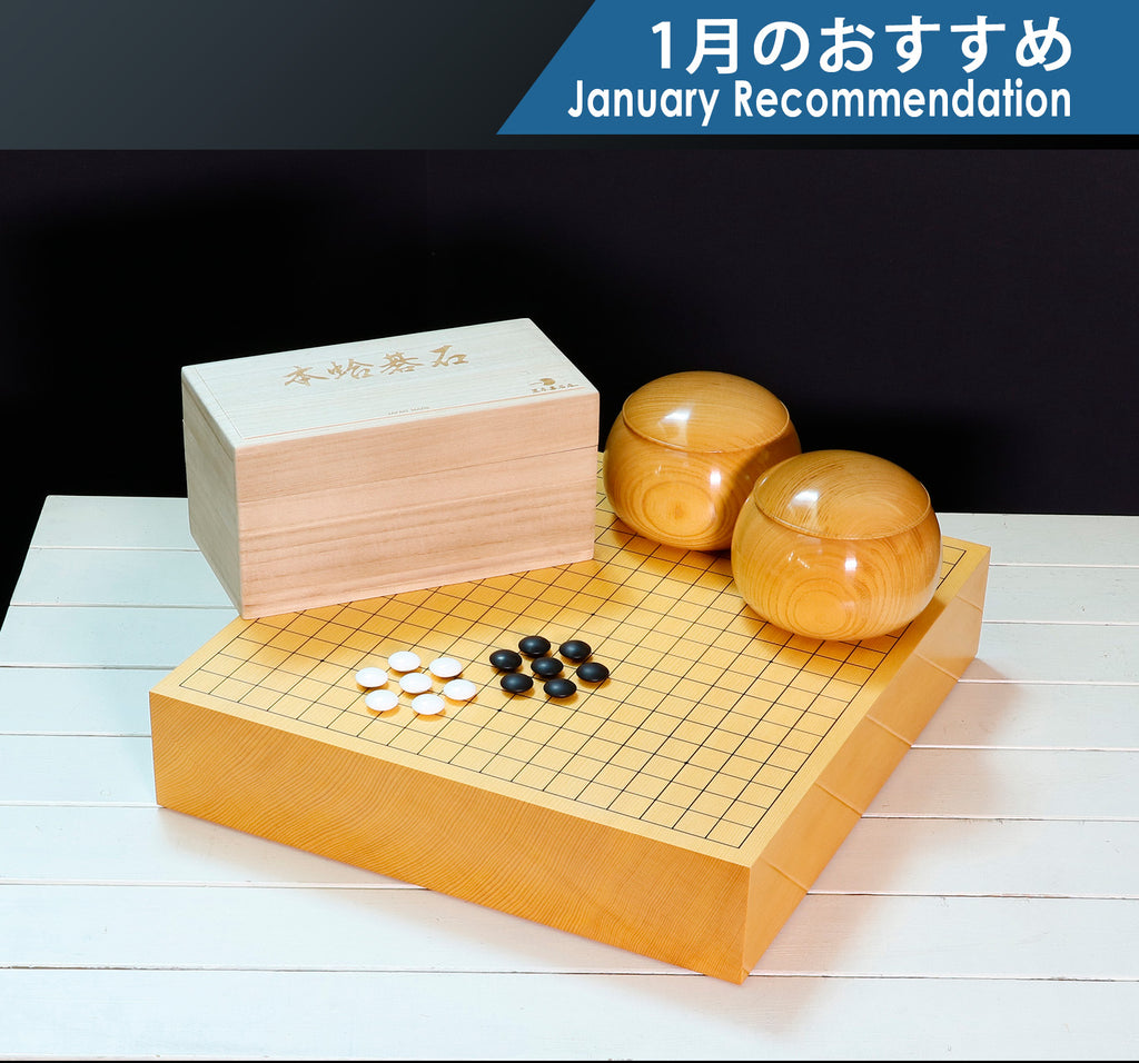 おすすめ囲碁3点セット(碁石+碁笥+碁盤)です。*セット画像は見本です。碁石は、碁石素材として最高級品とされているはまぐり貝殻から製作された「厳選はまぐり碁石華印34号」です。*黒碁石は、那智黒石製黒碁石が付属しています。碁笥は、高級碁笥として知られ人気の高い「欅(ケヤキ)碁笥」です。碁盤は、盤師 三輪京司製作 新榧卓上碁盤30号 太刀盛り仕上げです。ご贈答品やコレクションとして。もちろん、実際の対局にもおすすめです。中~上級者向けのセットですが、普段使い、贈り物にも最適です。