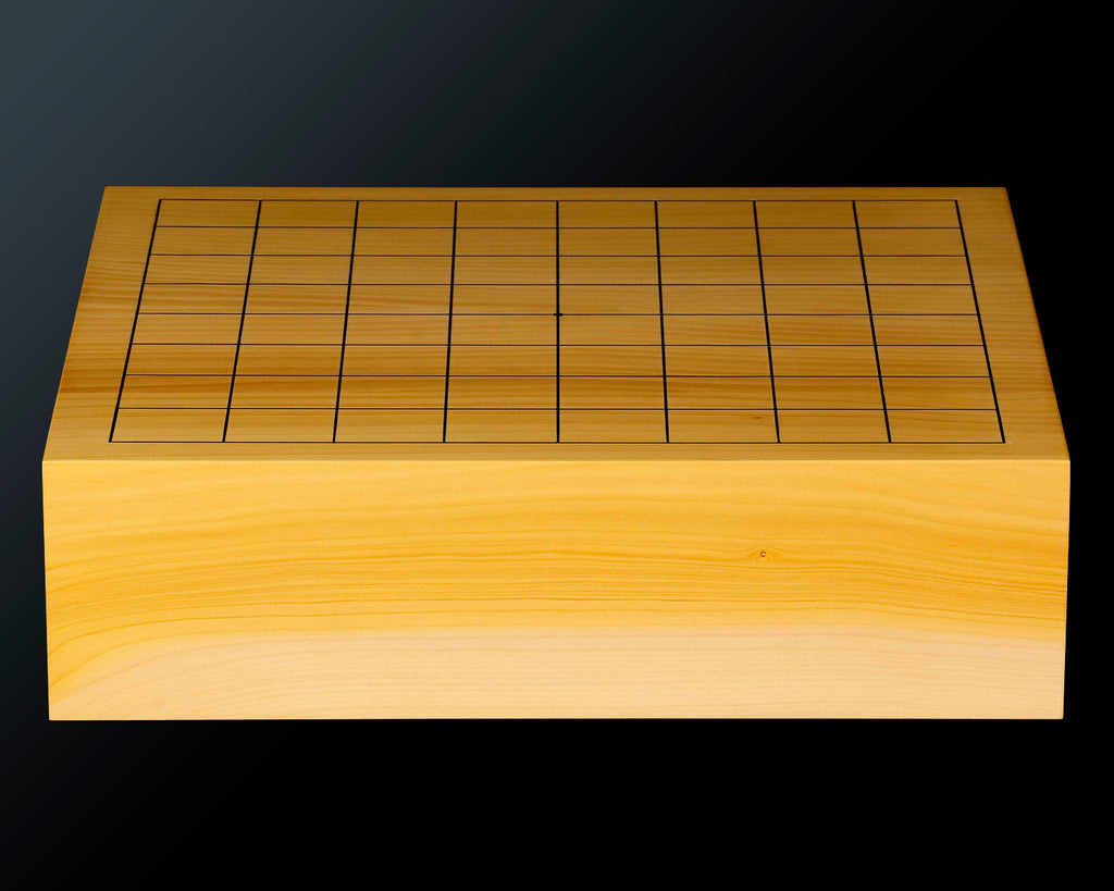 日向榧卓上9路碁盤 天柾 1.9寸 4枚接ぎ 太刀盛り仕上げ *訳有品です。盤材として最高級とされる日向榧を9路盤に仕上げました。目盛りは国産本漆を使用した太刀盛りで素晴らしい仕上がりです。9路盤は厚さはそのままで縦横比が通常の19路盤の約1/4スケールになるため、しっかりとした厚みがあります。*画像をご確認ください。ご贈答品やコレクションとして。もちろん、実際の対局にもおすすめです。