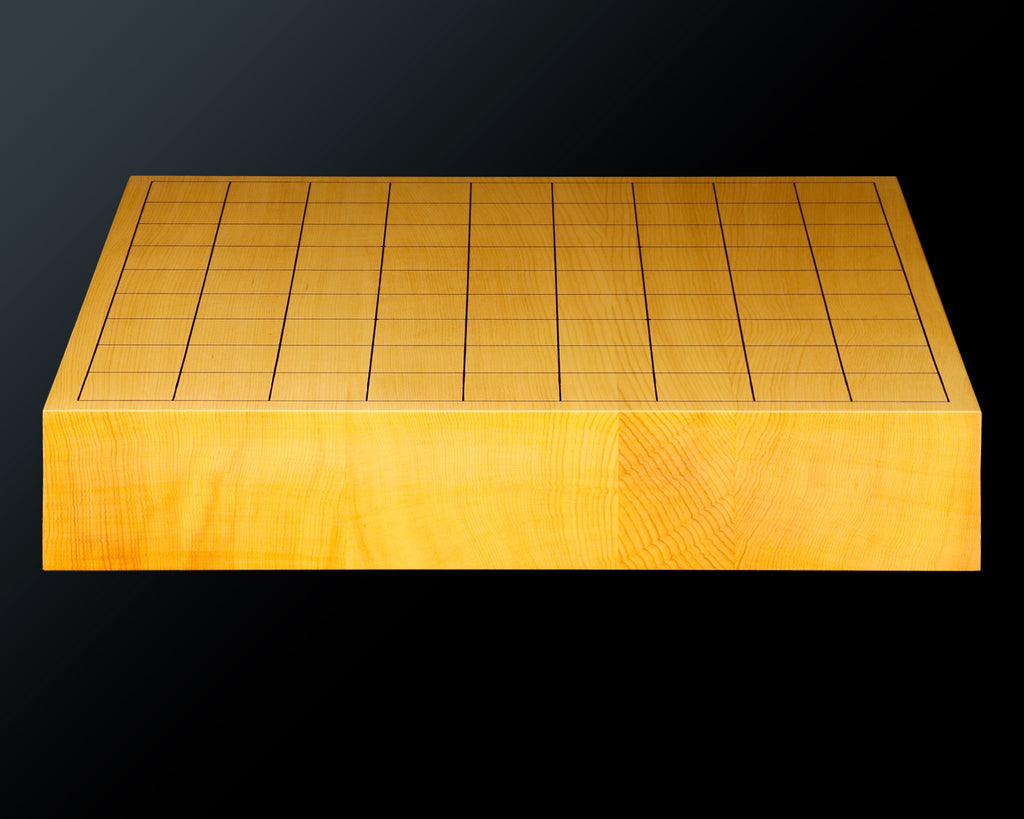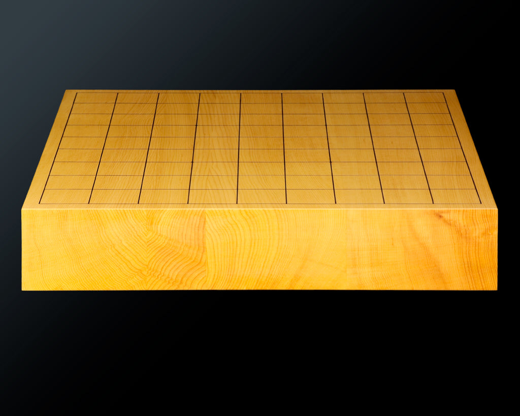 日本産本榧の1.9寸 柾目 4枚接ぎ 卓上将棋盤です。榧特有の柔らかい木色と美しい木目で、指し味を存分に堪能できる逸品です。目盛りは国産本漆を使用した太刀盛りで素晴らしい仕上がりです。盤材として最高級とされる榧の盤ですが、国産榧材の確保は年々困難になり、今後ますます希少価値が高まっていくと思われます。