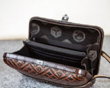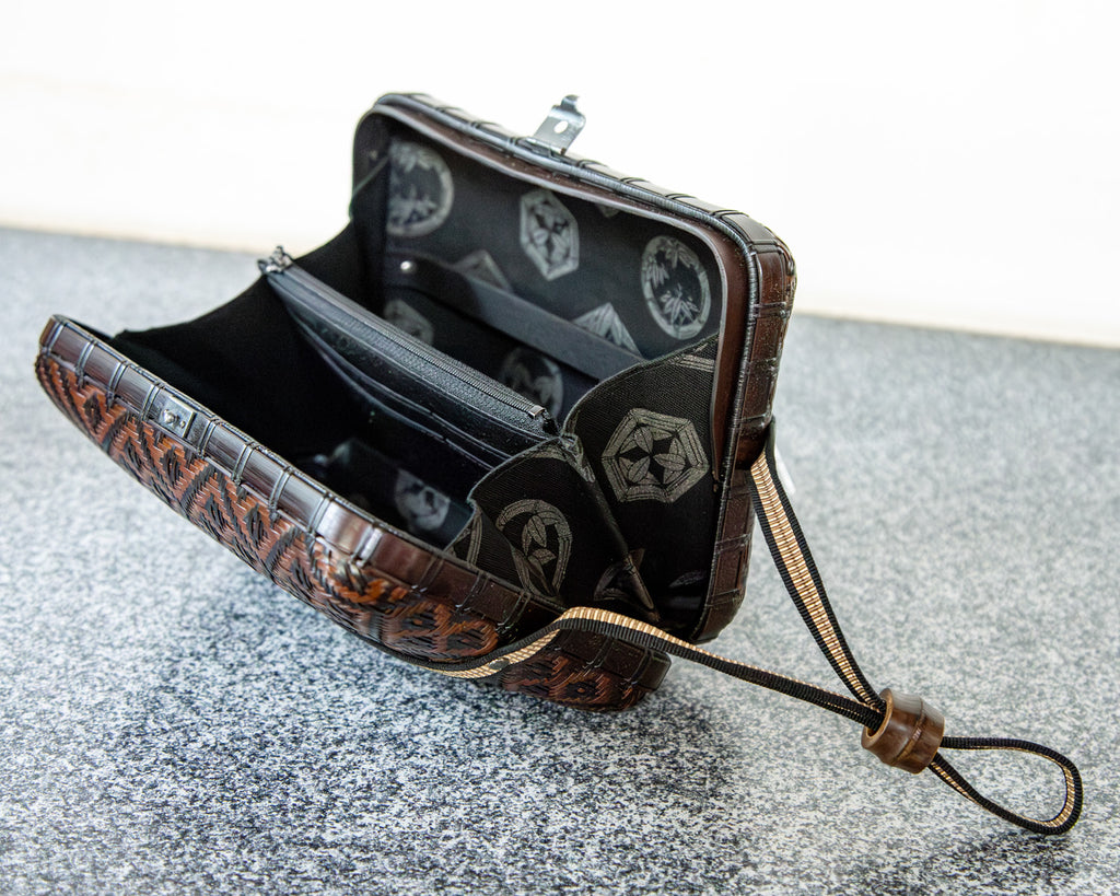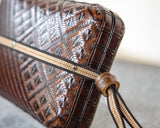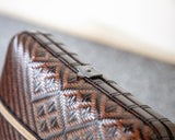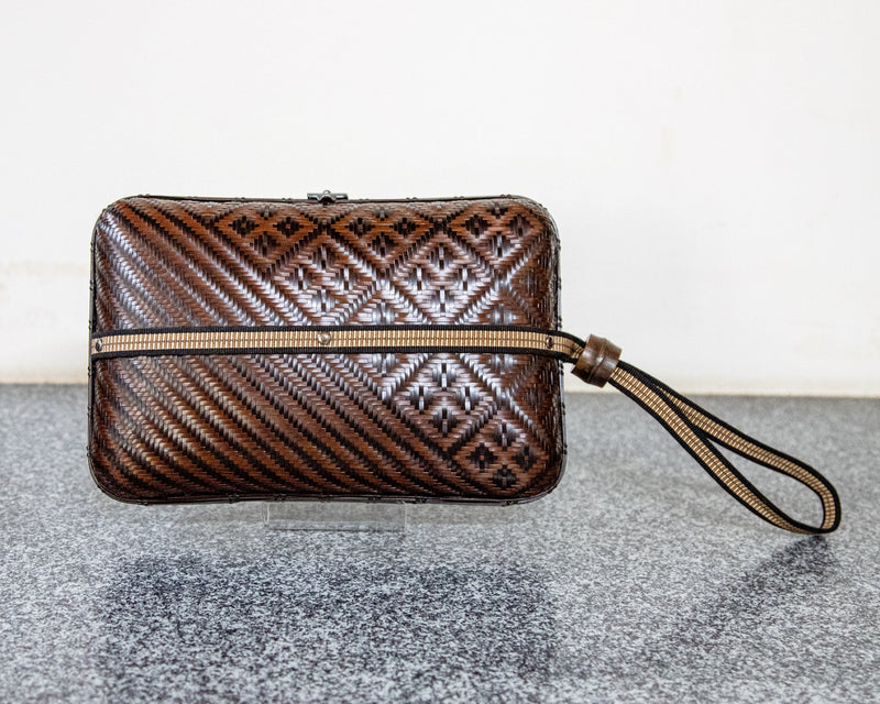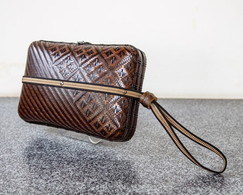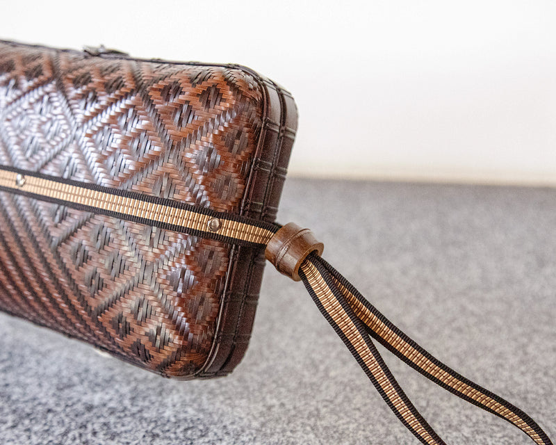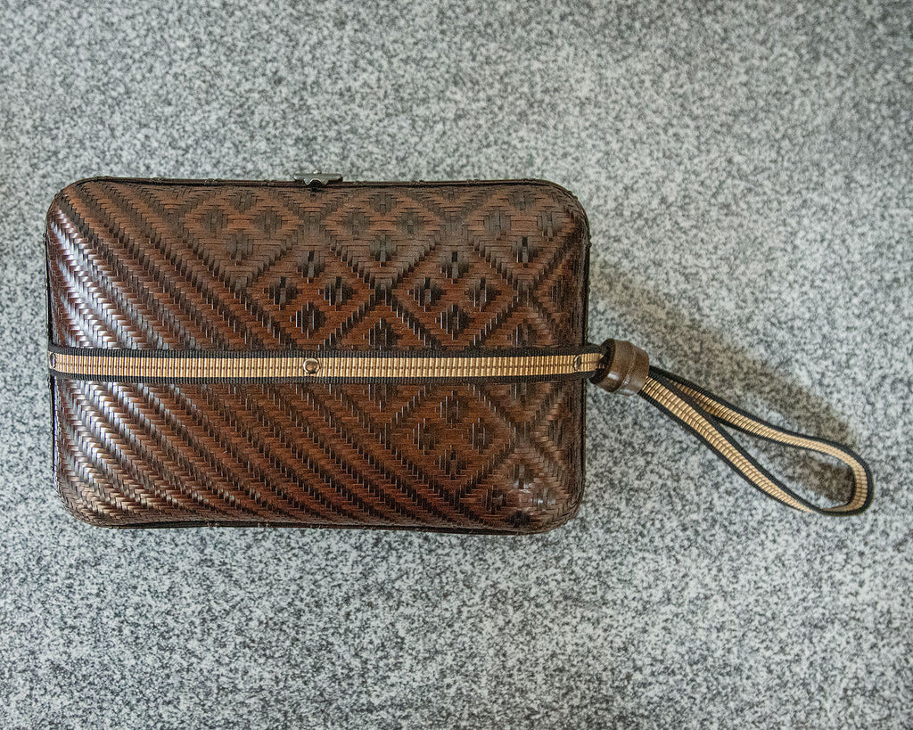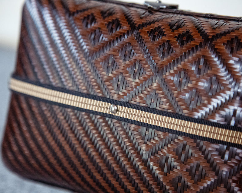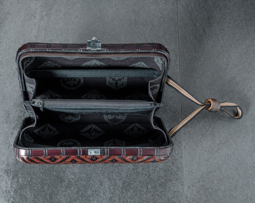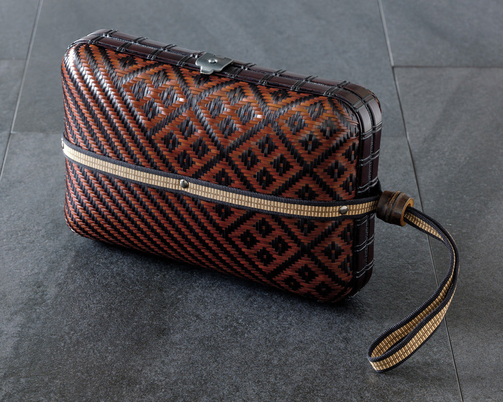 竹工房 喜節の「網代編セカンドバッグ」は、手仕事の温かみがそっと伝わる、やさしい風合いのバッグです。国産の竹を丁寧に編み込んだ網代模様は、落ち着いた上品さと、どこか懐かしさを感じさせてくれます。見た目は軽やかでも、しっかりとした作りで安心してお使いいただけるのも魅力のひとつです。和の趣がありながら、洋装にも自然になじむデザインで、日常のお出かけはもちろん、少しかしこまった場にも寄り添います。手にするたび、竹のやさしさと職人の心づかいを感じられるバッグです。