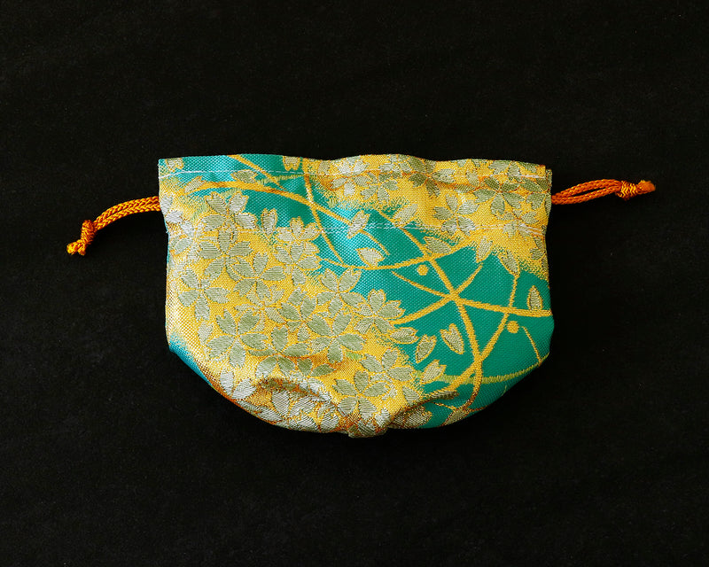 当店オリジナルの西陣織製駒袋(桜露芝 ヒスイ)です。厚手の生地製で、駒の持ち運びの際や普段の収納時にお使いいただけます。