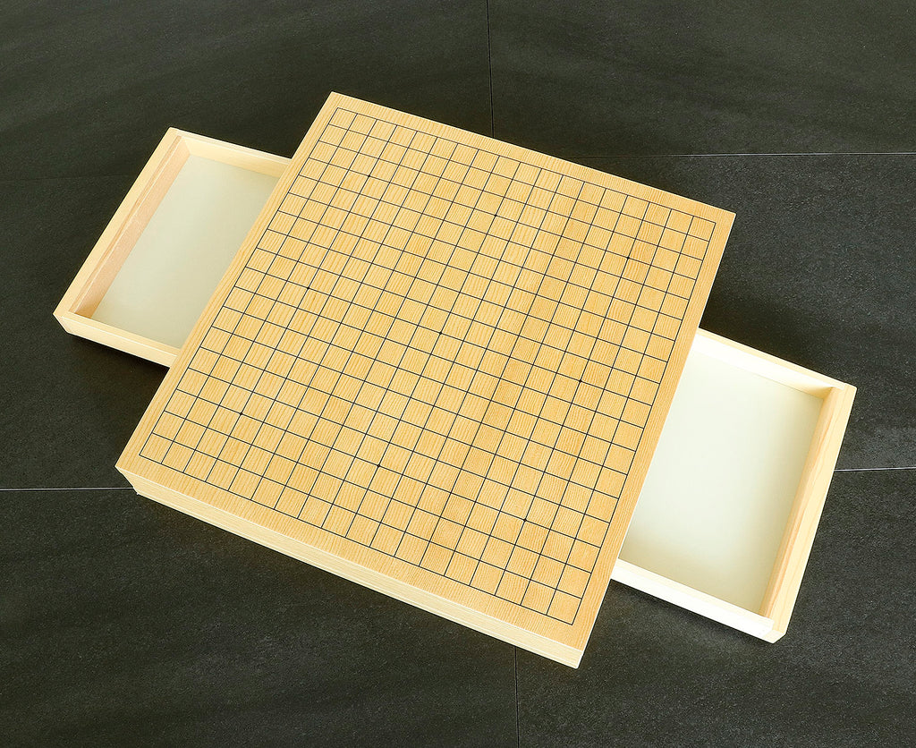 碁石収納碁盤 碁盤両側面の引き出しに碁石を収納可能ですので、この碁盤だけで囲碁を楽しめる優れものです。