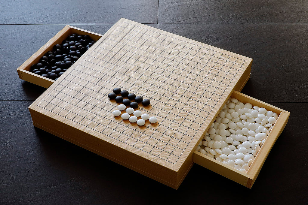 碁盤両側面の引き出しに碁石を収納可能ですので、この碁盤だけで囲碁を楽しめる優れものです。