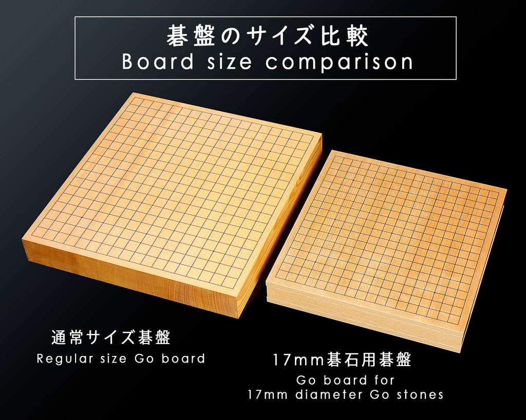 碁盤比較 碁盤、碁石ともに、通常の約80%サイズです。