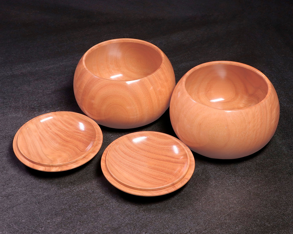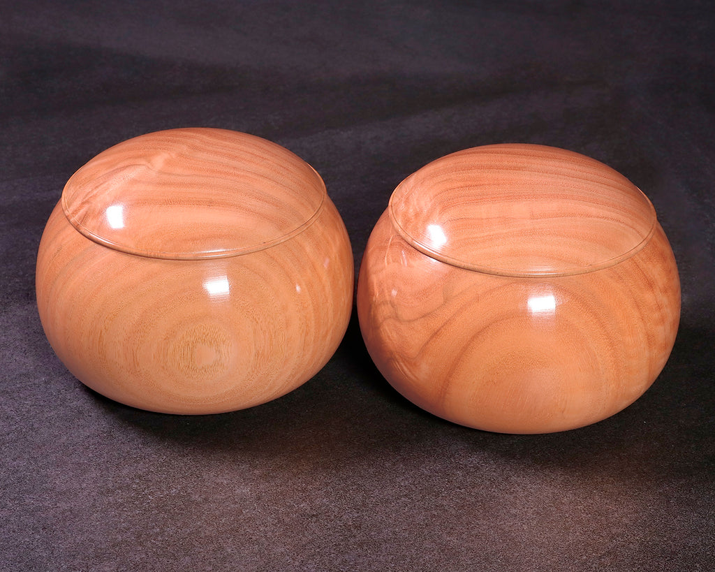 木工挽物職人 懐志製作の「ユーカリ」碁笥 特大 杢入り ~40号碁石用です。ユーカリ材を使用した碁笥は、明るく清潔感のある色合いと、なめらかで素直な木目が魅力の一品です。ほどよい硬さと安定性を備えたユーカリ材は、実用性と扱いやすさのバランスに優れ、日常の対局用として安心してお使いいただけます。軽やかさの中にも十分な強度があり、開閉や持ち運びもスムーズ。手に取った際の感触もやさしく、碁石の出し入れを快適に行えます。主張しすぎないナチュラルな風合いは、さまざまな碁盤や碁石とも合わせやすく、現代的な空間にもよくなじみます。実用重視の方から、はじめて囲碁道具を揃える方まで、幅広くおすすめできる銘木碁笥です。器側面に「杢(もく)」が入った美しい碁笥です。*底面に「懐志」焼き印入り。*画像をご確認ください。*40号の碁石まで入ります。◎「懐志」の碁笥製作の動画をご覧いただけます。*動画(日本語版、英語版)は、画像一覧にございます。ぜひ、ご覧ください。