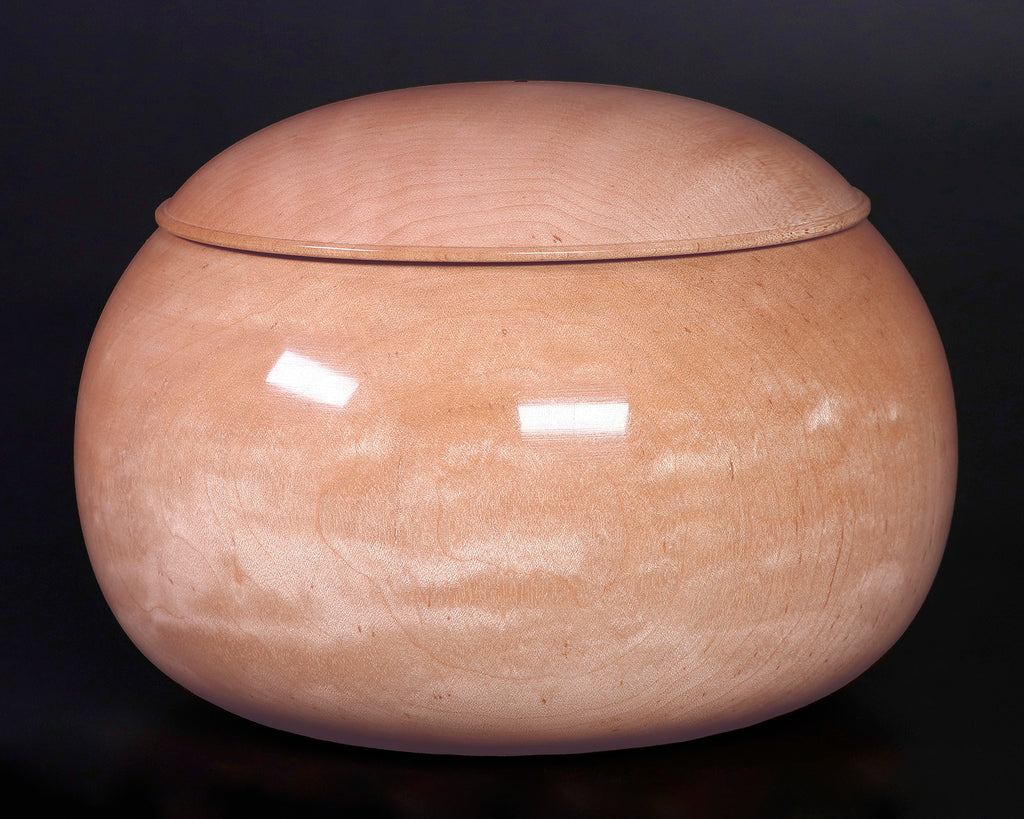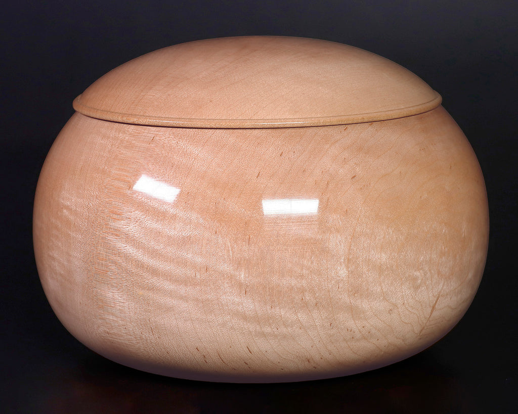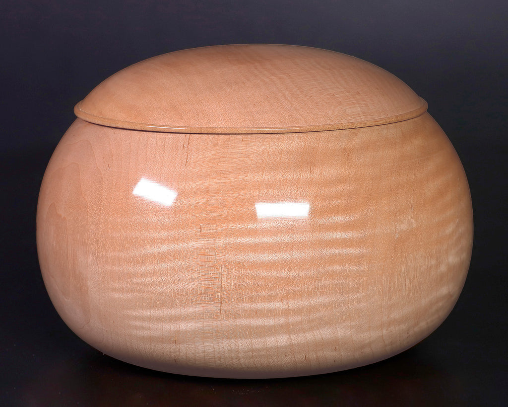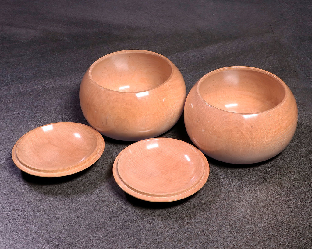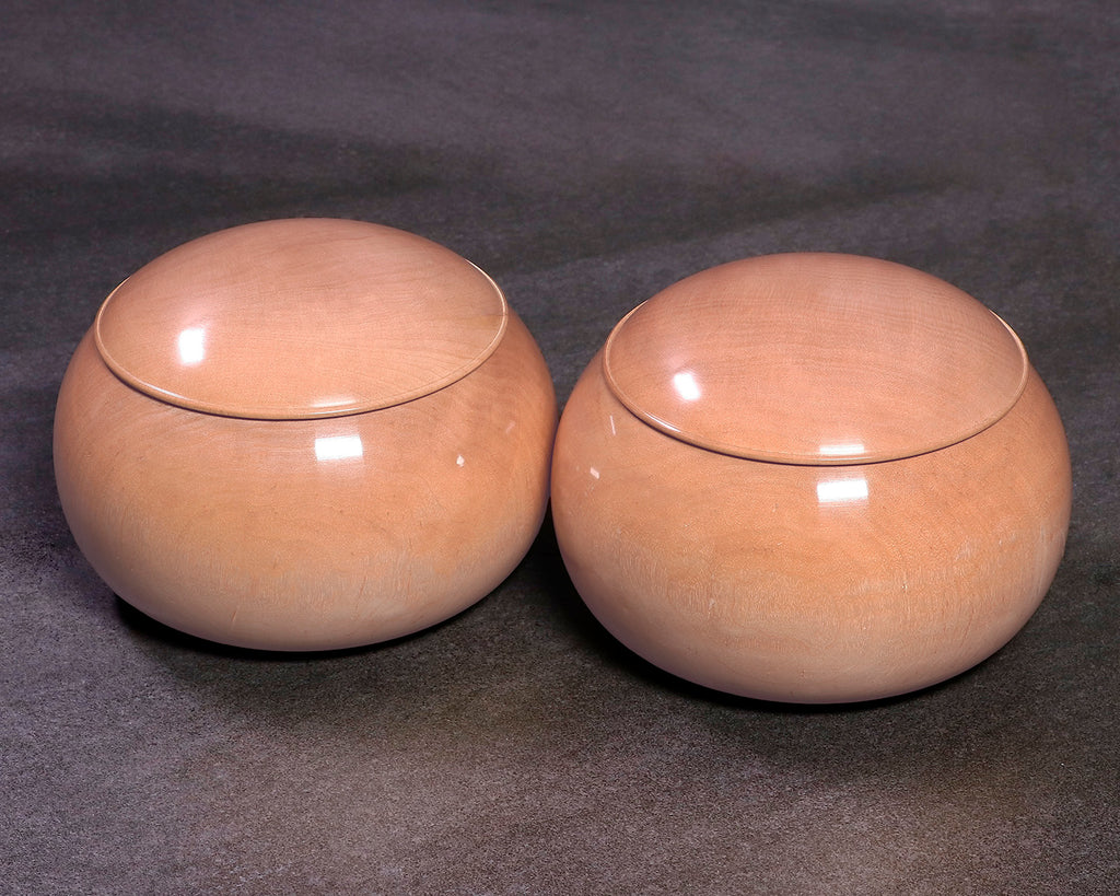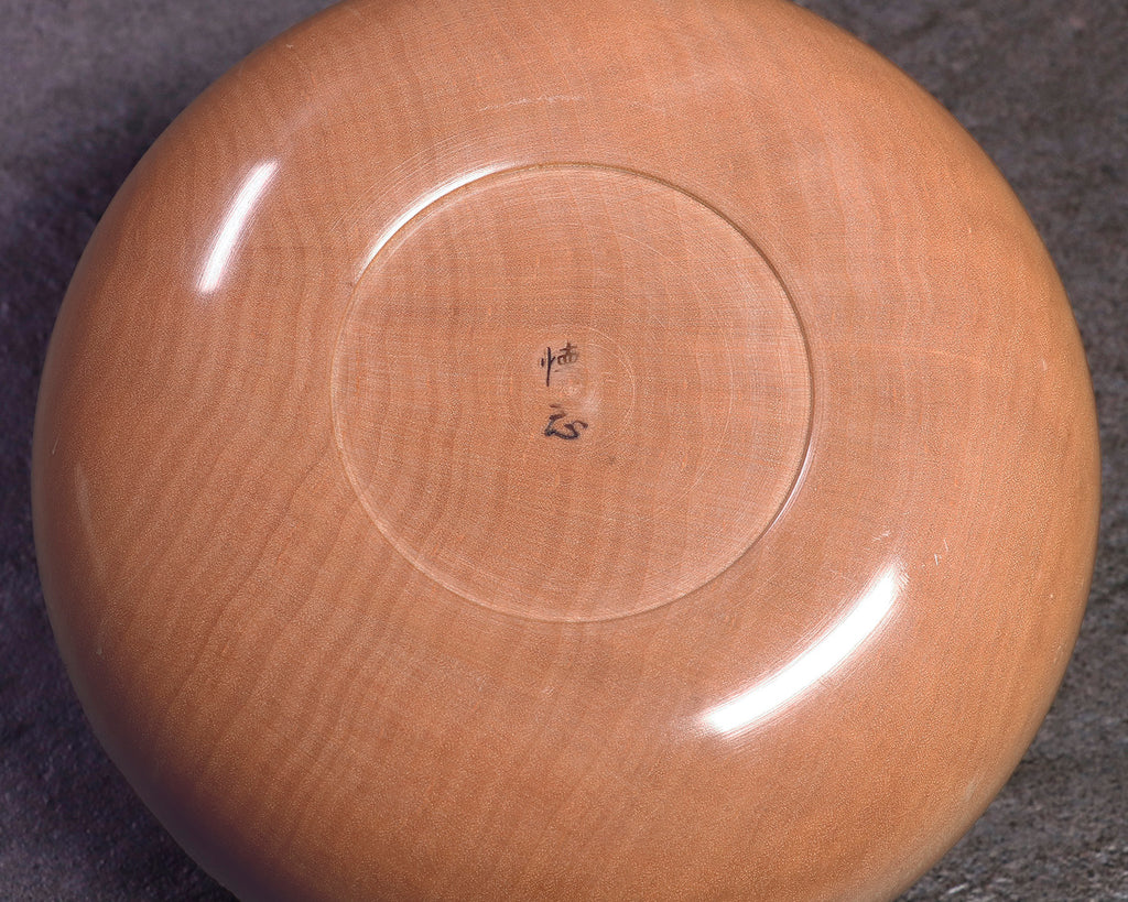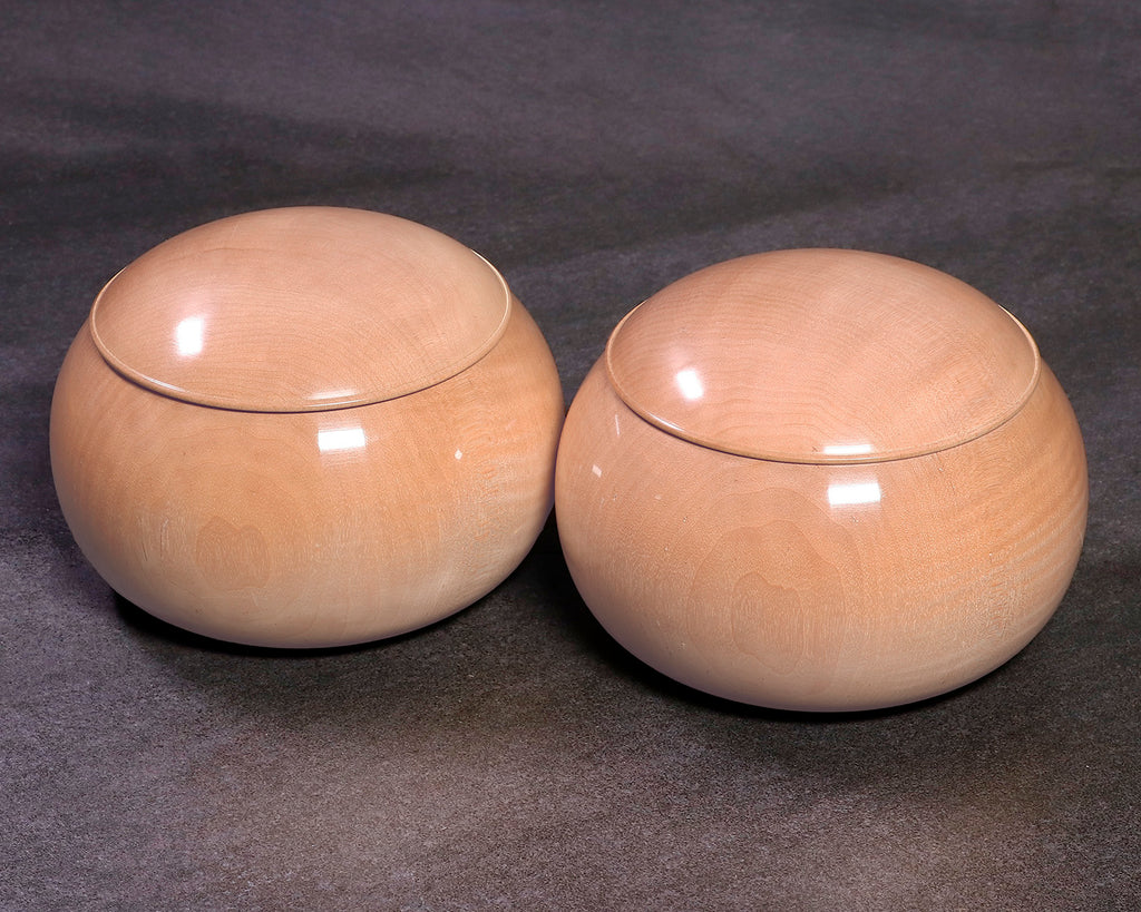 木工挽物職人 懐志製作の「楓(かえで)」碁笥 特大 杢入り ~40号碁石用 *訳有品です。「楓」製の碁笥は、市場にはほとんど流通していない碁笥としては珍しい品です。「楓」碁笥の木色は、画像の通り全体的に淡く薄黄白色の美しい白さで、ところどころに特有の絹のようなさざ波模様の光沢(リップルマーク)が入っています。碁笥としては比較的軽量で、木質は柔らかく木目が細かく緻密です。明るく白味掛かった透明感のある木色と柔らかい木目が、ナチュラルな風合いを感じさせる碁笥です。*現品限りです。器側面に「杢(もく)」が入った美しい碁笥です。*底面に「懐志」焼き印入り。*両方の焼き印不良のため、訳有品価格での販売です。*画像をご確認ください。*40号の碁石まで入ります。◎「懐志」の碁笥製作の動画をご覧いただけます。*動画(日本語版、英語版)は、画像一覧にございます。ぜひ、ご覧ください。