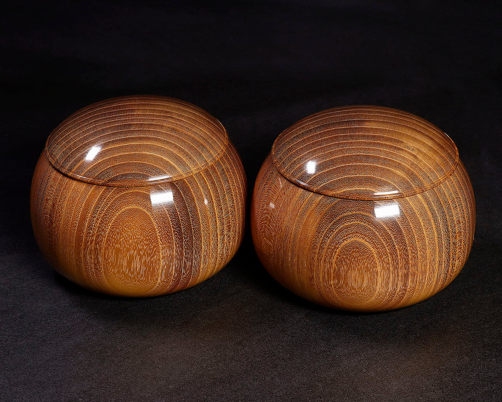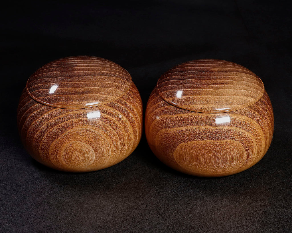 木工挽物職人 懐志製作の「本桑」碁笥 特大 ~40号碁石用です。人気が高く、高級碁笥の代表格とされる「本桑(ほんくわ)」碁笥です。非常に堅い木質、美しい木色と木目、重厚感のどれもが高級碁笥にふさわしい「本桑」製の碁笥です。本桑材を使用した碁笥は、きめ細やかな木肌と美しい黄金色の木目が魅力の高級品です。桑材は古くから工芸材として珍重されてきた銘木で、なめらかな手触りと上品な光沢を備えています。落ち着いた色調の中に現れる繊細な杢目が、自然素材ならではの豊かな表情を生み出します。適度な硬さと粘りがあり、耐久性にも優れているため、日常の対局用としても安心して使用できます。使い込むほどに色味が深まり、飴色へと変化していく経年美化も大きな魅力です。実用性と鑑賞性を兼ね備え、盤や碁石とも調和する、格調高い伝統素材の碁笥です。贈答品としても人気があります。*底面に「懐志」焼き印入り。*画像をご確認ください。*40号の碁石まで入ります。◎「懐志」の碁笥製作の動画をご覧いただけます。*動画(日本語版、英語版)は、画像一覧にございます。ぜひ、ご覧ください。