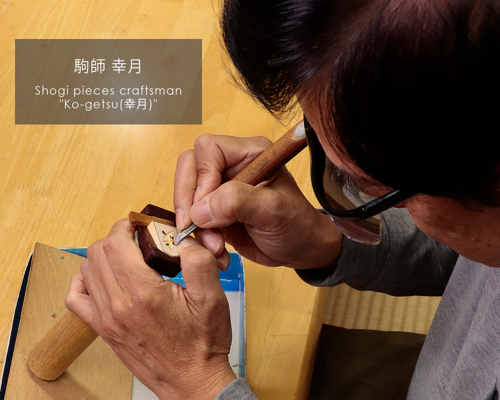 駒師 幸月(こうげつ)作 薩摩本黄楊 柾目 源兵衛清安書 手彫り将棋駒です。作者の駒師『幸月』は、現代の名人5名と評されている駒師『富月』に師事し、駒づくりを学んだ駒師です。こちらの駒は、薩摩黄楊の柾目木地に源兵衛清安書の文字が丁寧に彫りこまれた「手彫り駒」です。初めての一組としてはもちろん、上質な一品を求める方にもおすすめできる、バランスの取れた魅力を持つ手彫り将棋駒です。